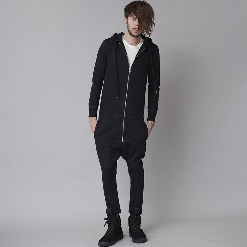 股上を深く取りサルエルパンツのシルエットをオールインワンに落とし込んだ珍しいデザインが個性を与えてくれる