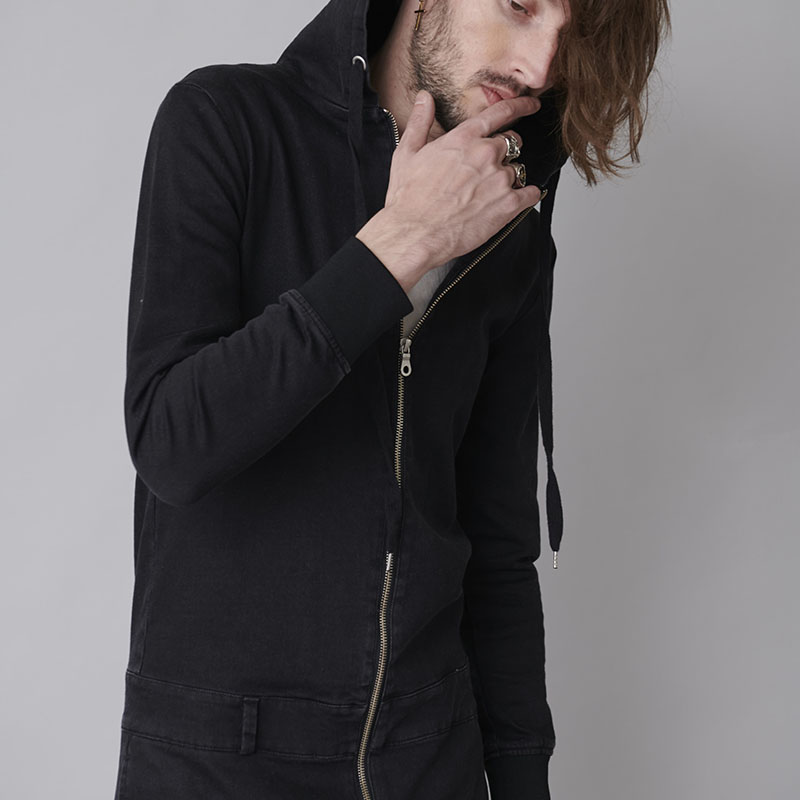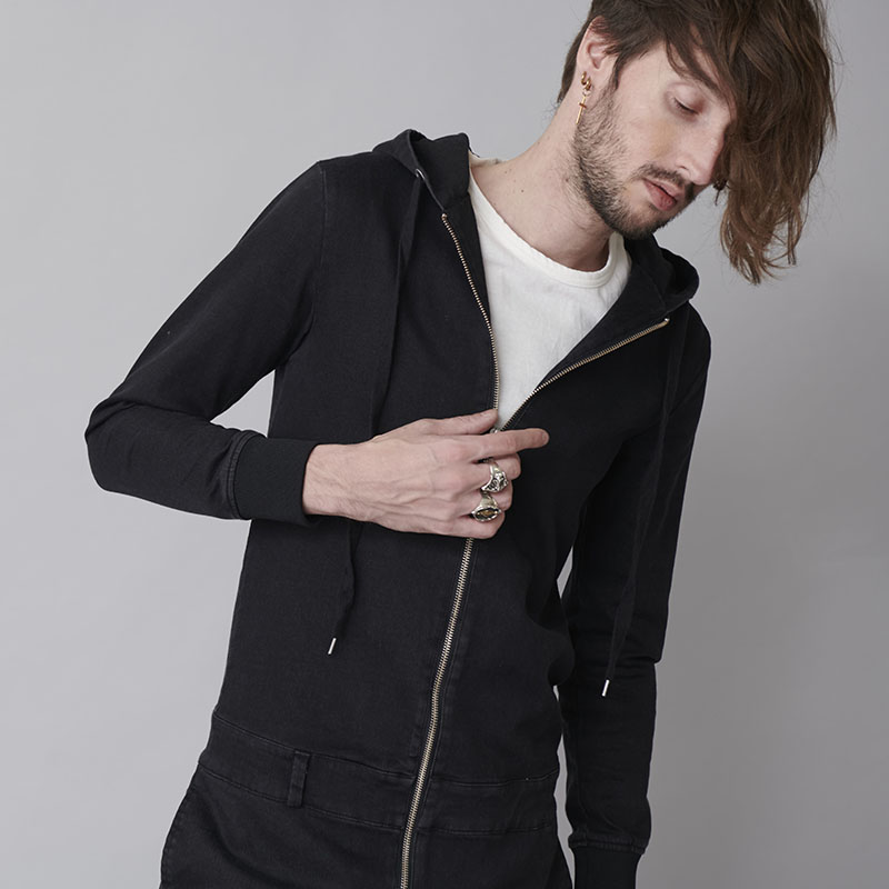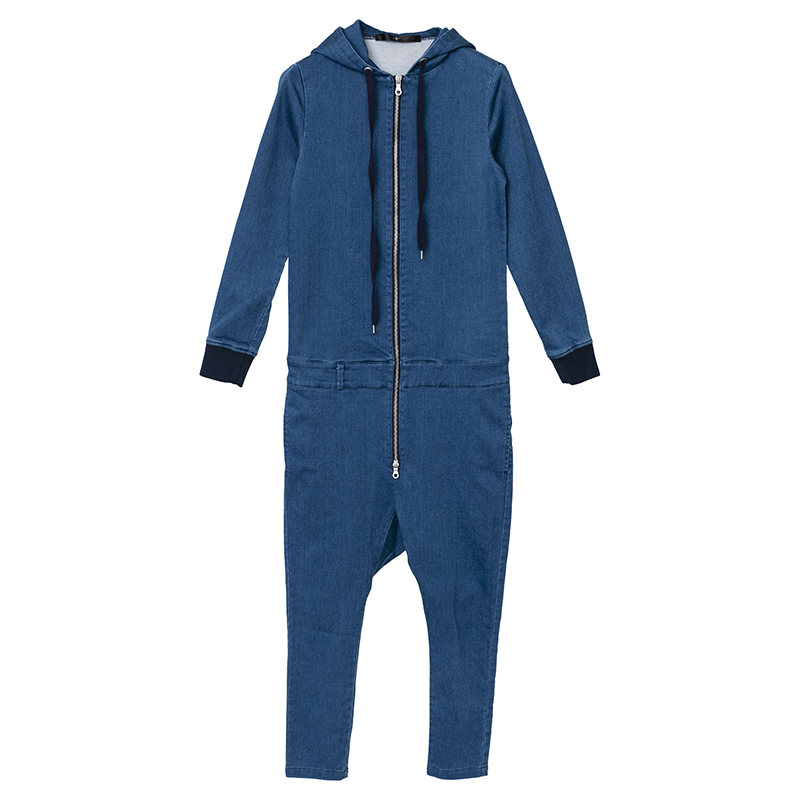 2018A/Wコレクションで即完売したオールインワンをベースに素材はニットデニムを採用し新たにリリースデニムのカジュアルな風合いを味わいつつスウェット感覚で軽快な着心地を併せ持つ一着