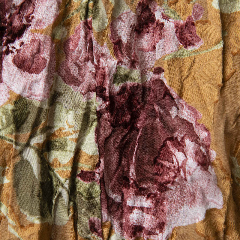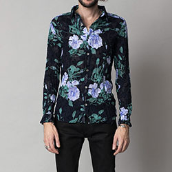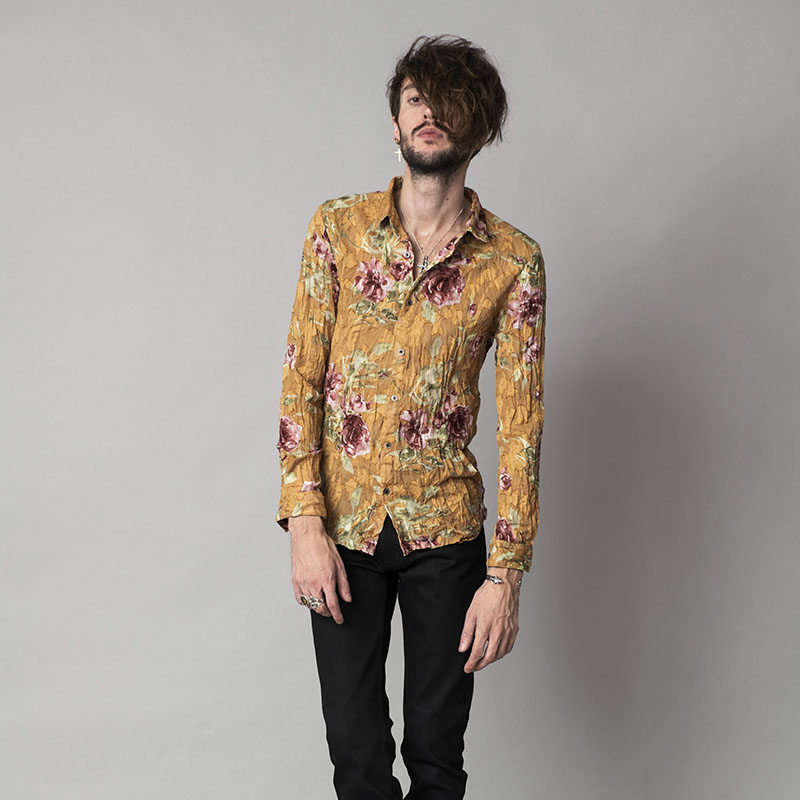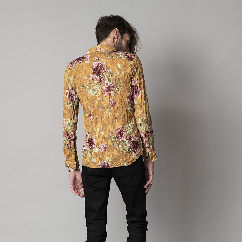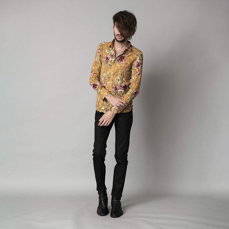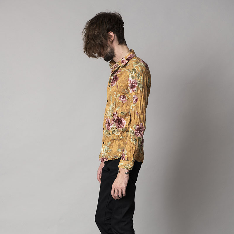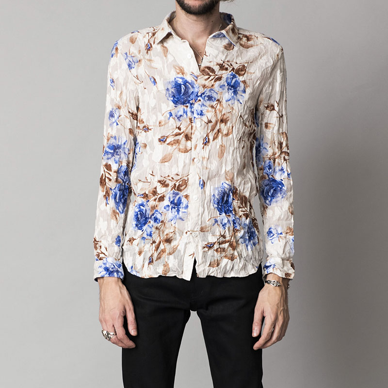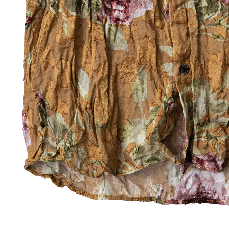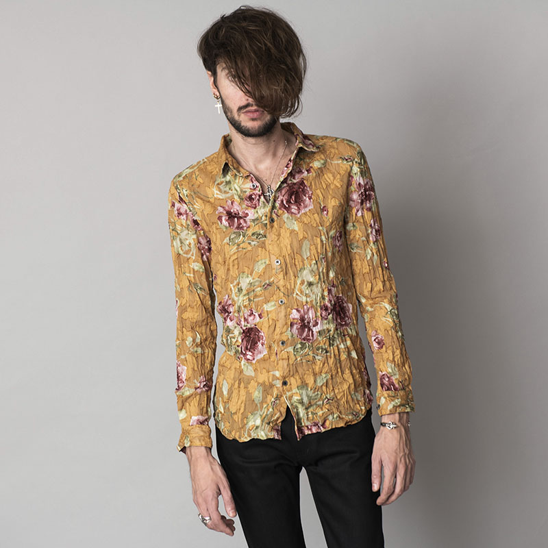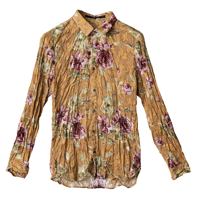 2017S/Sコレクションで好評を博した花柄シャツがマイナーチェンジされ再登場本作は立体的な生地感を作るジャガード織りで花柄を表現した生地の上から更にローズ柄をプリントした趣向を凝らした一枚