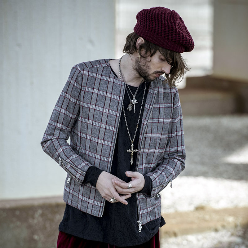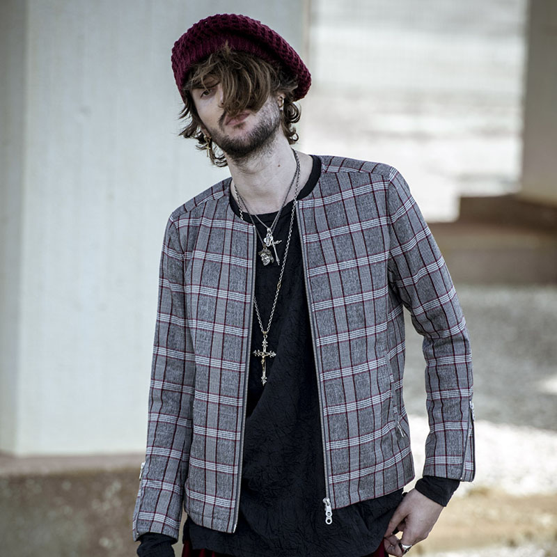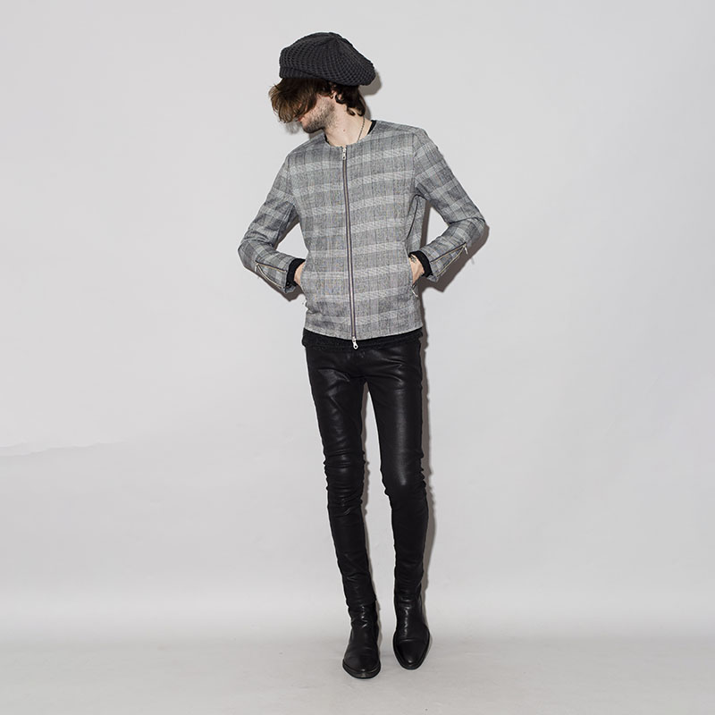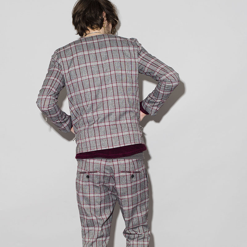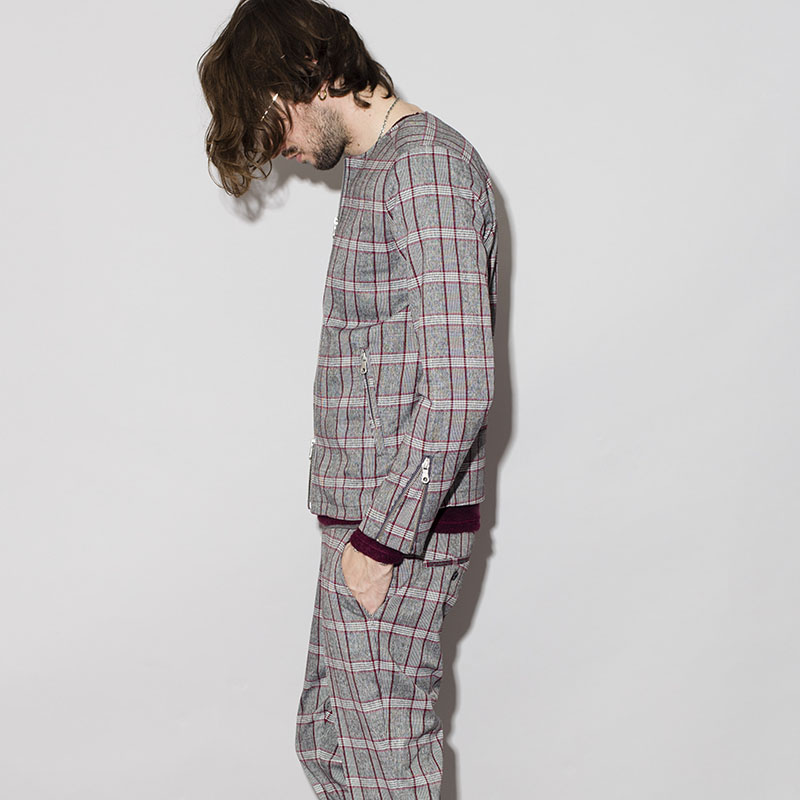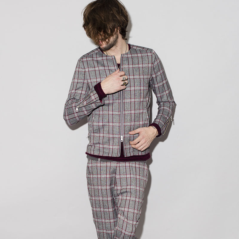トレンドのノーカラーブルゾンにNO ID.らしい、グレンチェックの配色を施したグレンチェックノーカラーBLZ。ベースのカラーリングごとに、異なるカラーの裏地を用い、さりげないポイントもアクセントに。