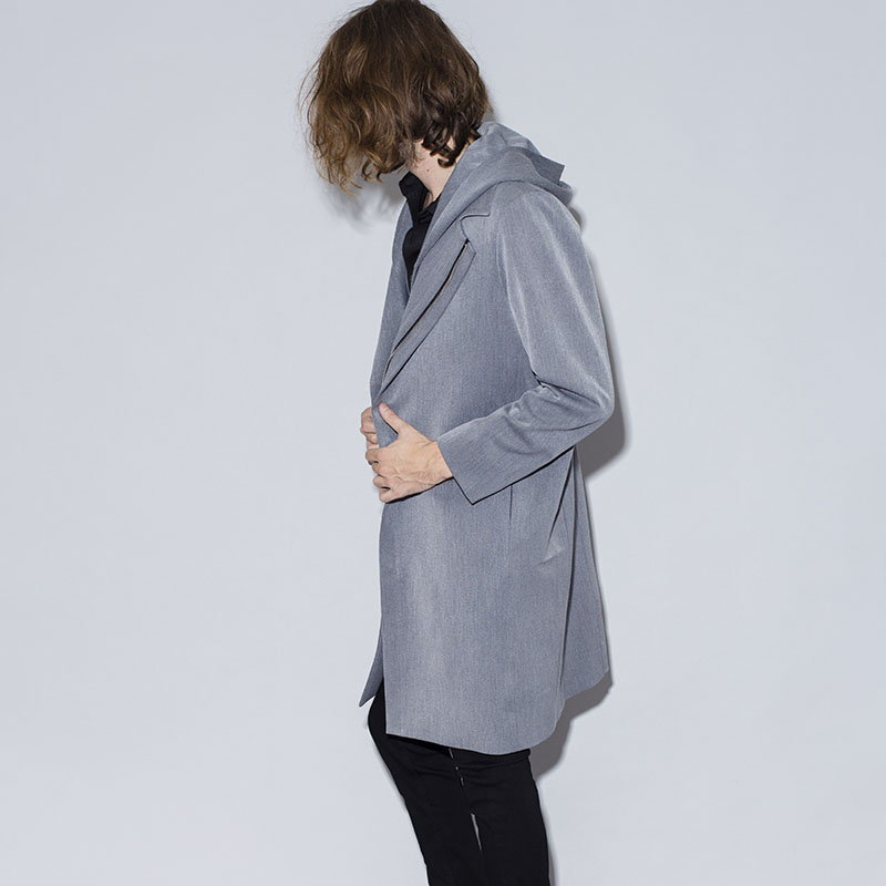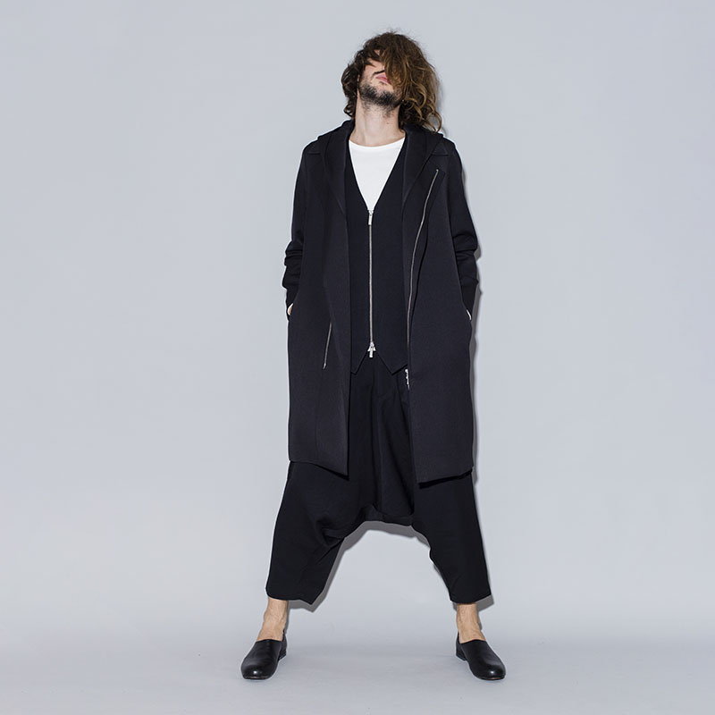 2019A/W COLLECTIONでも好評のレイヤードフーデッドコートが春仕様になって再リリース。グレー、ブラックのモノトーンで統一しモードな雰囲気を強調した本作。