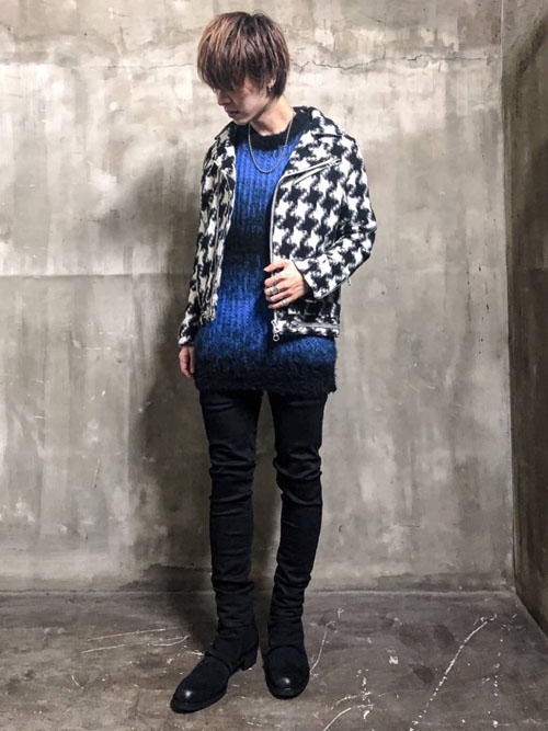 ローゲージニットに起毛加工を施し暖かみのある風合いとグランジロックな雰囲気をプラス。