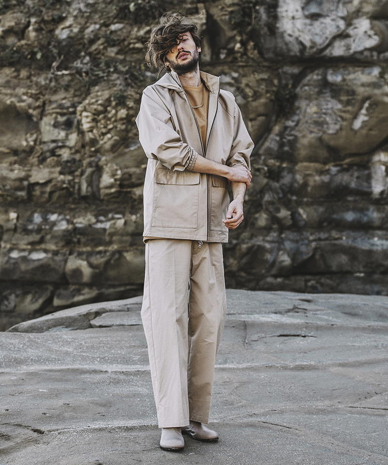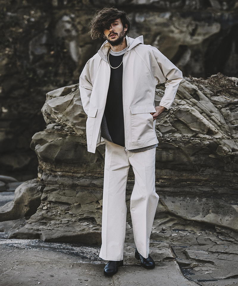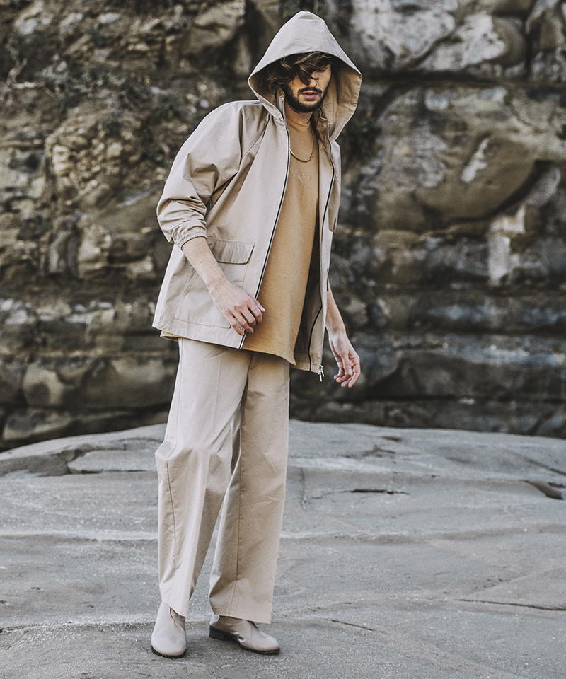 同じ生地で作られてたハイカラーフードBIG-BLZとのセットアップスタイルもお勧め。