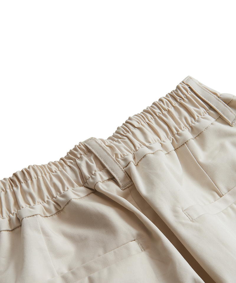 ウエストには生地の中にゴムを内蔵し幅広い体型に対応できる作りでベルトレスに着用可能。