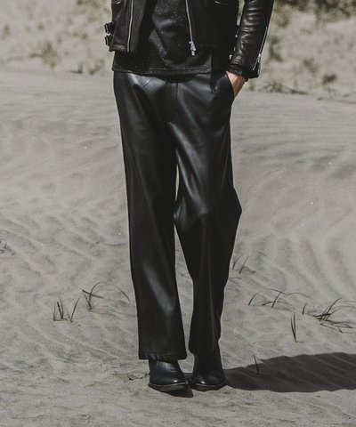 裾はゴム仕様で収まりが良くスッキリとした印象に。裾に付けたファスナーは広げる事でシルエットの変化も楽しめるアレンジを加えている。
