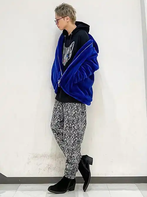 装飾を抑えたシンプルなブルゾンをベースにフェイクファーの柔らかい毛並み、綺麗な発色により目を惹くデザインに仕上げたブルゾン。BIGシルエットだが軽くて暖かいフェイクファーを採用し重さを感じさせない着心地の良さも魅力的。大きく作られた襟のインパクトもありシンプルながら存在感のあるアイテム。