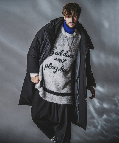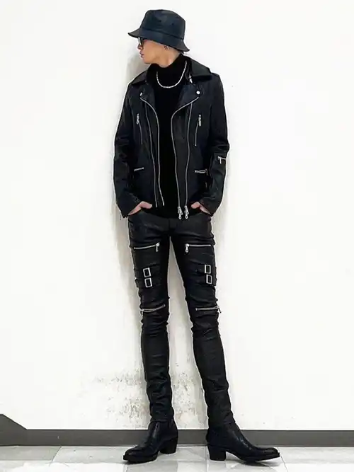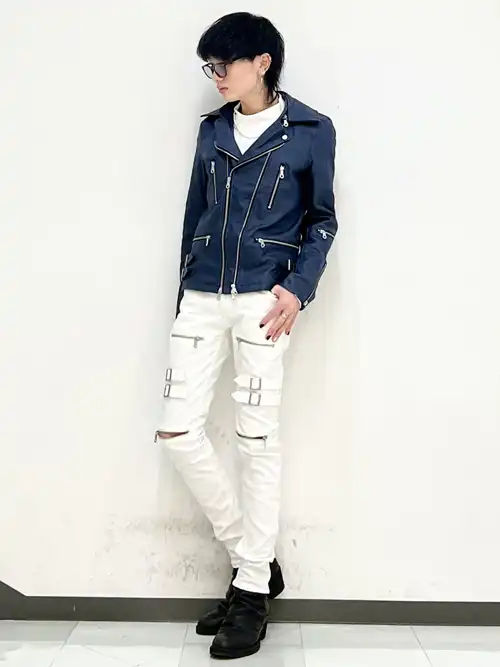 ファスナーを多用しシンメトリーな表情の本作はフロントファスナーを左右どちらでも締める事ができるジェンダーレス仕様となっている。