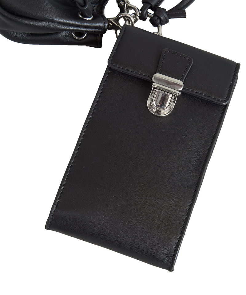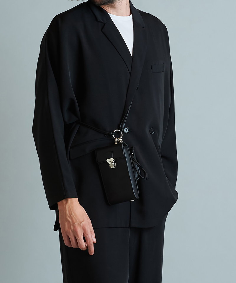 メインバッグにはスマートフォンが収納され裏面にはカード入れが付属されている。