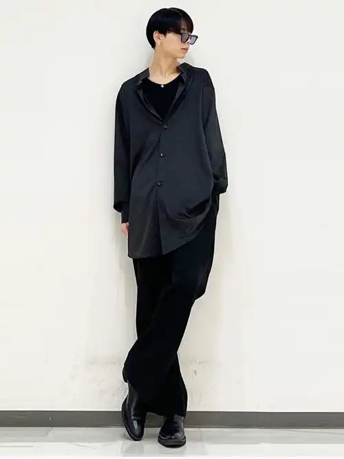 落ち着いた光沢で上品な艶感のある生地も相まってモードな佇まいを堪能して頂きたい。