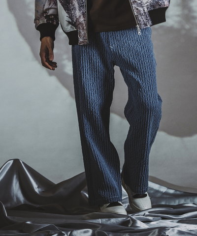 股上も深目に設定しているのでハイウエストで履く事で野暮ったくならず今の空気を感じるシルエットを構築できる。