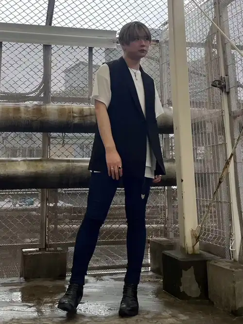ロングシャツやBIG-Tとのレイヤードスタイルに合わせやすいアイテムに仕上がっている。