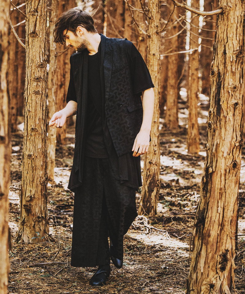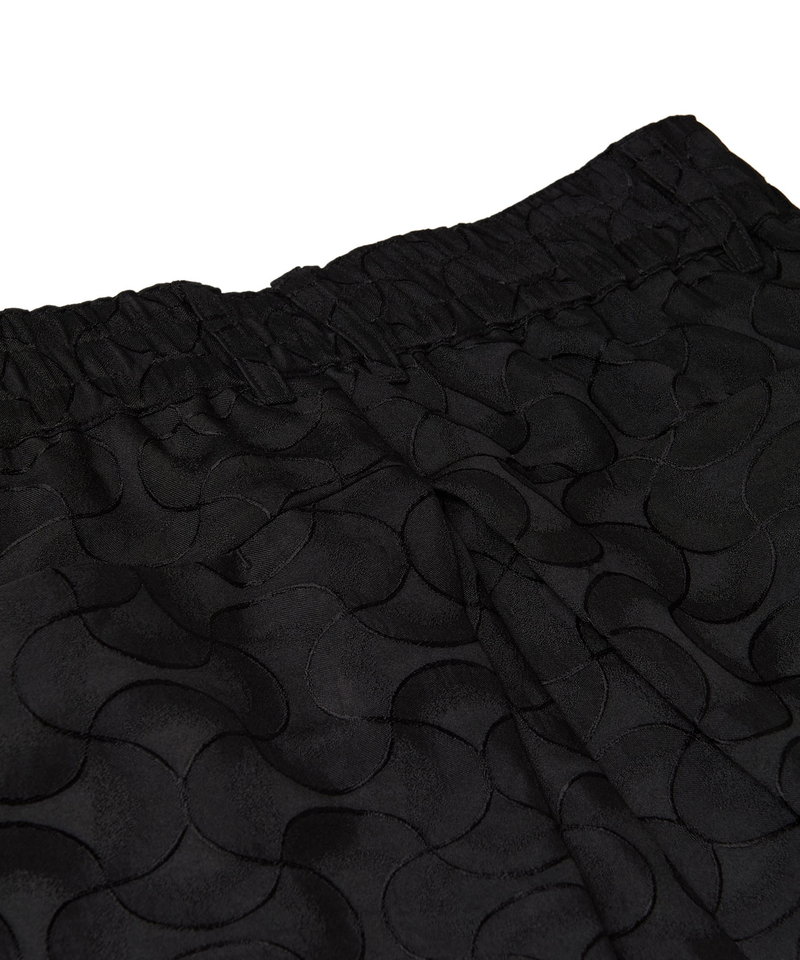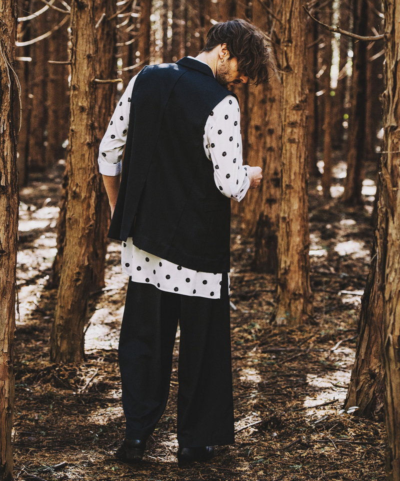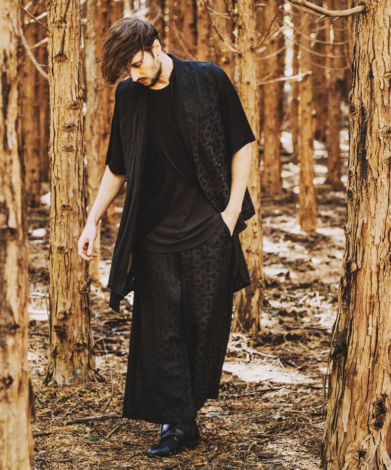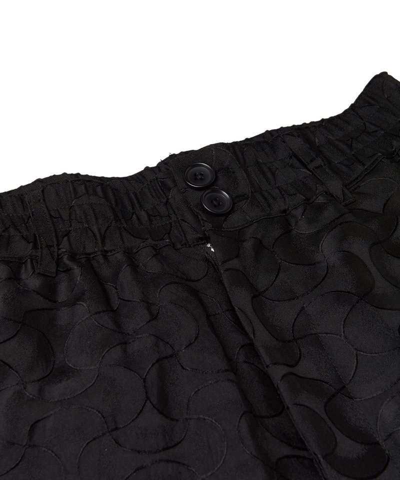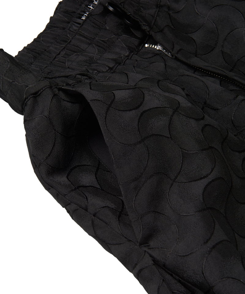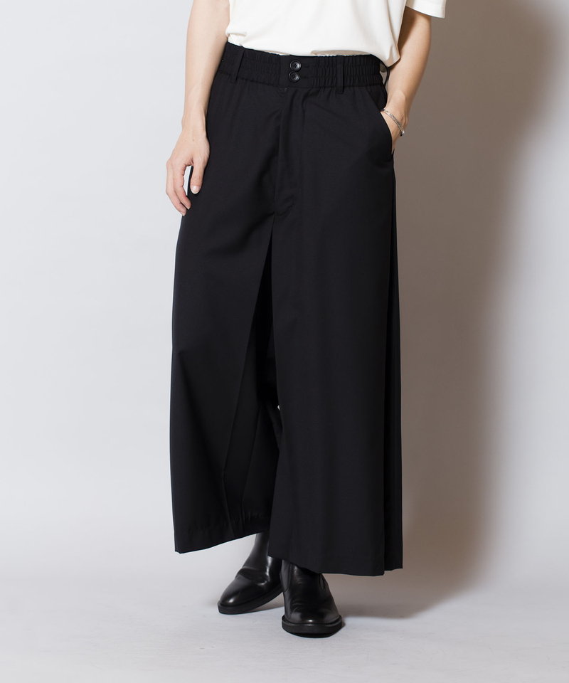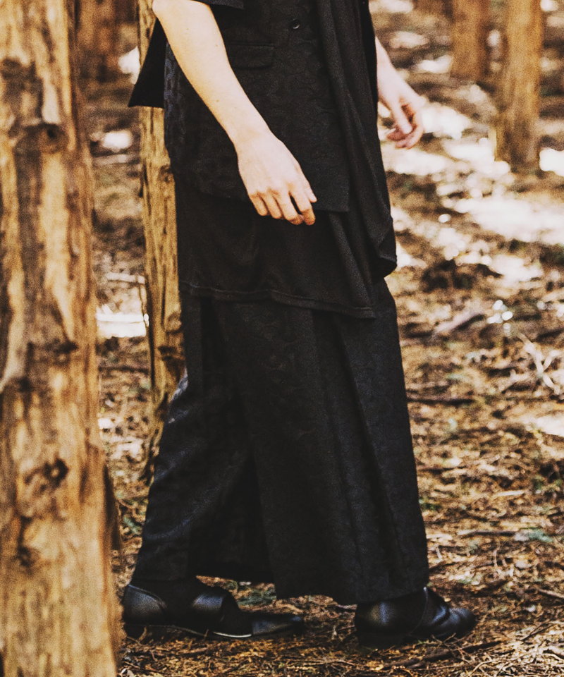 軽快な履き心地のバギーシルエットをベースにアウトシームとインシームにタックを施し奥行きのある立体的なシルエットを表現している。