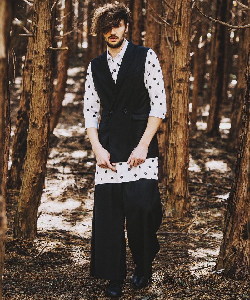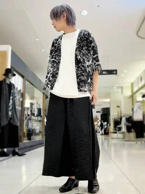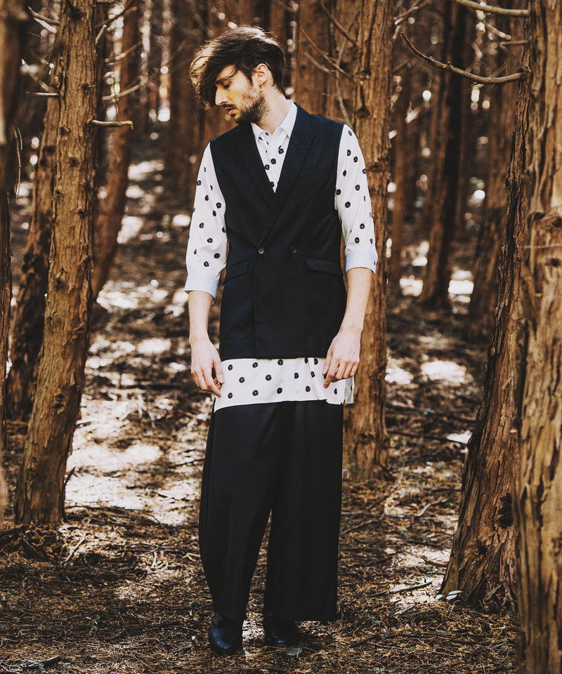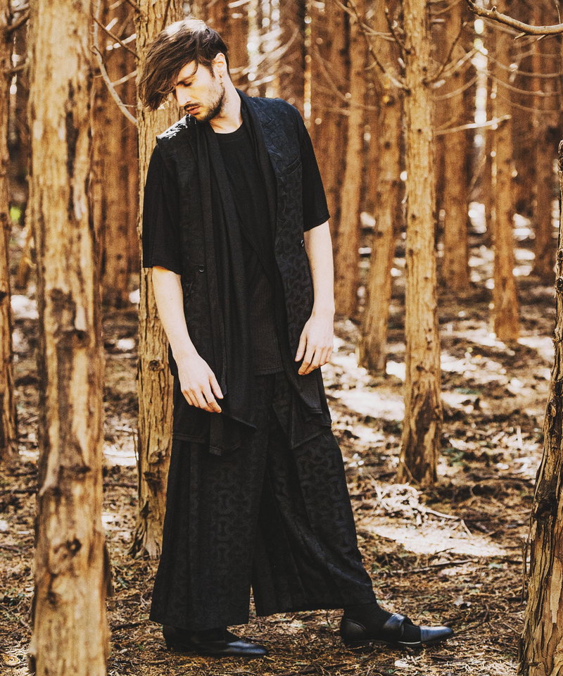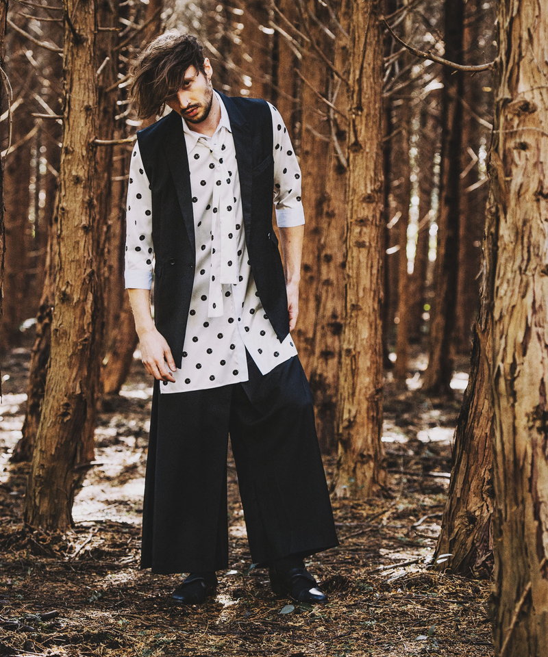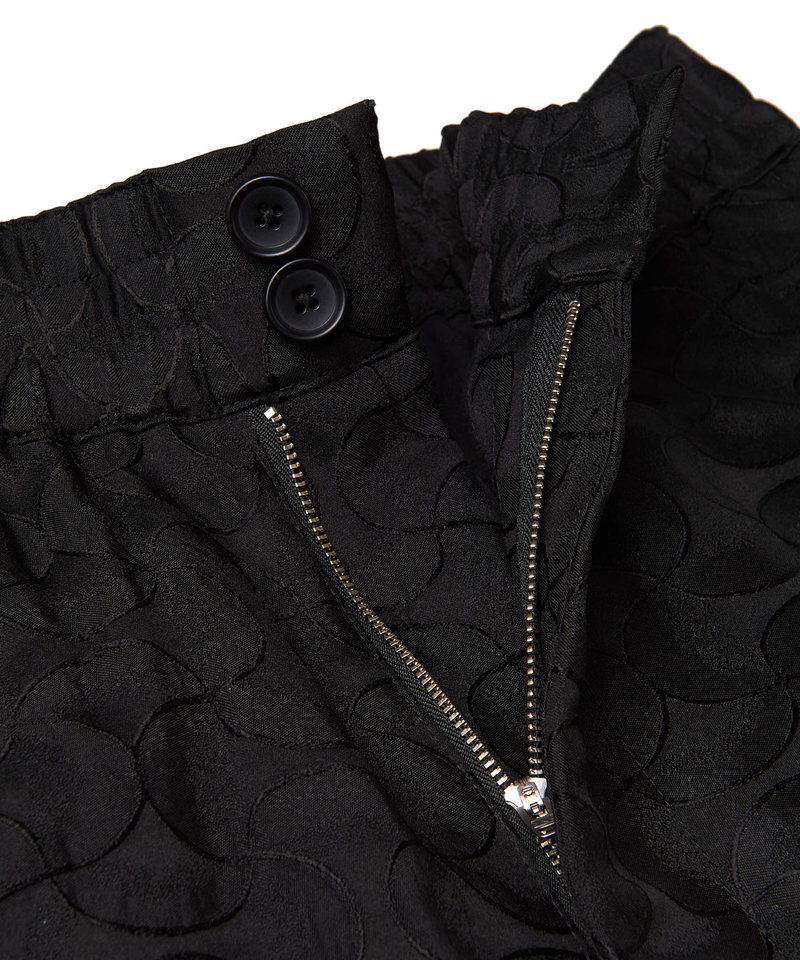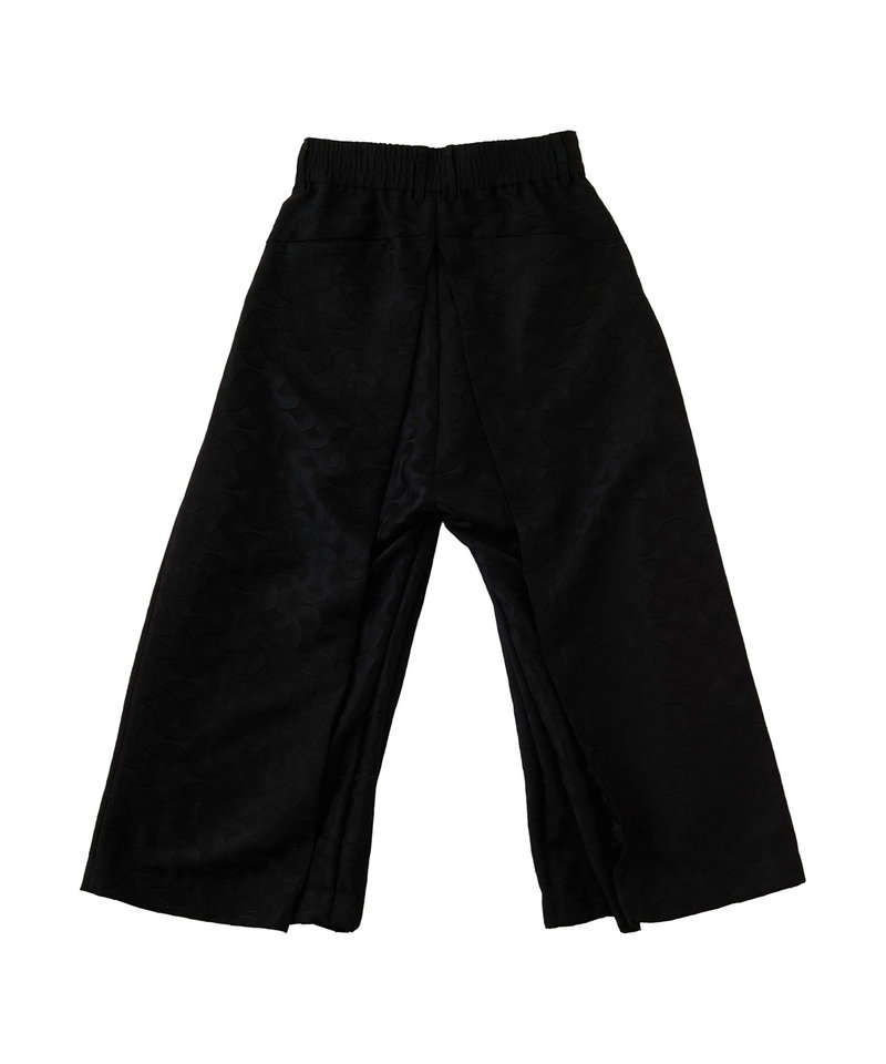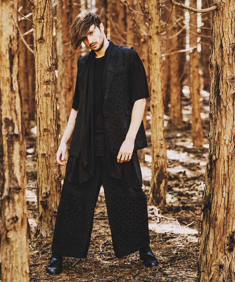 軽快な履き心地のバギーシルエットをベースにアウトシームとインシームにタックを施し奥行きのある立体的なシルエットを表現している。