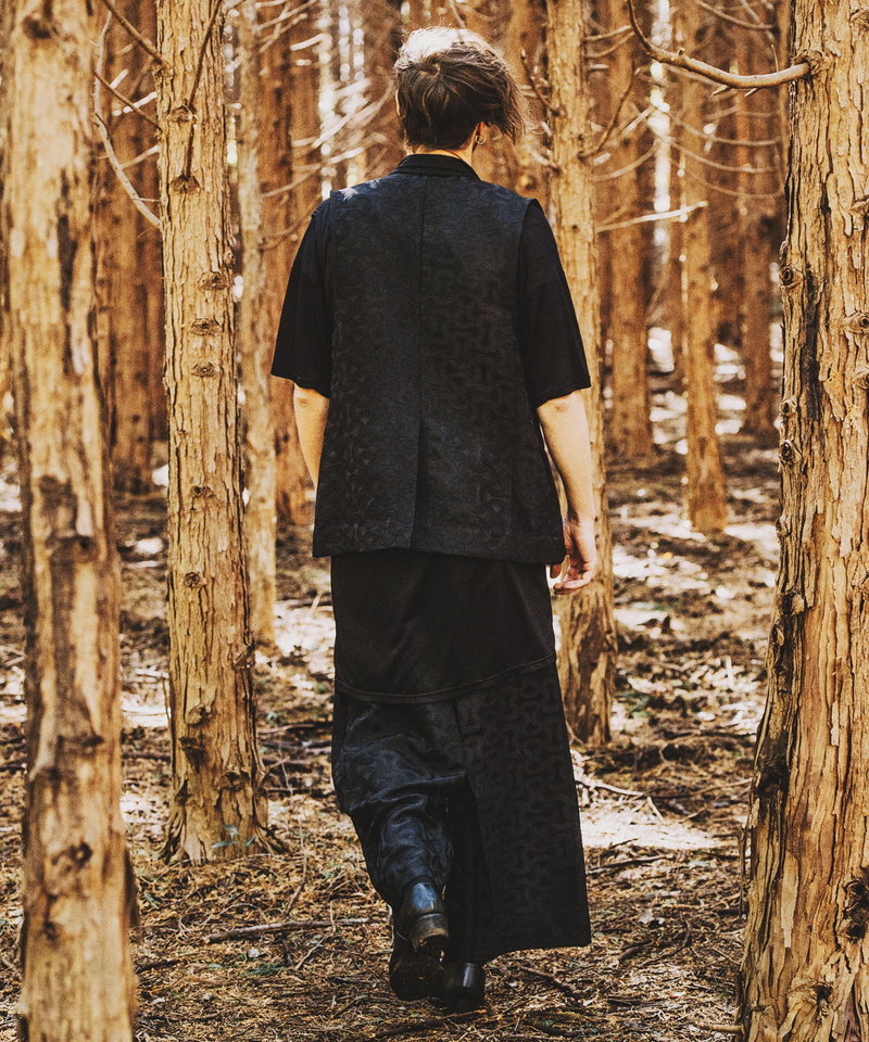 同生地の【852006-453J(ノースリーブジャケット)】とのセットアップスタイルもお勧め。