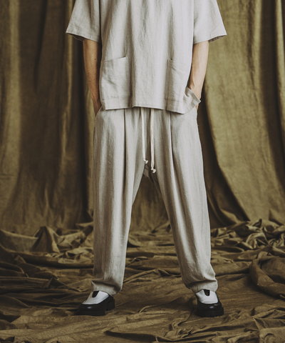 フロントボタンには比翼仕立てを採用し、アクセントのピンタックが映えるよう、その他の主張を極限まで抑えたミニマルなデザインが魅力的な一枚。