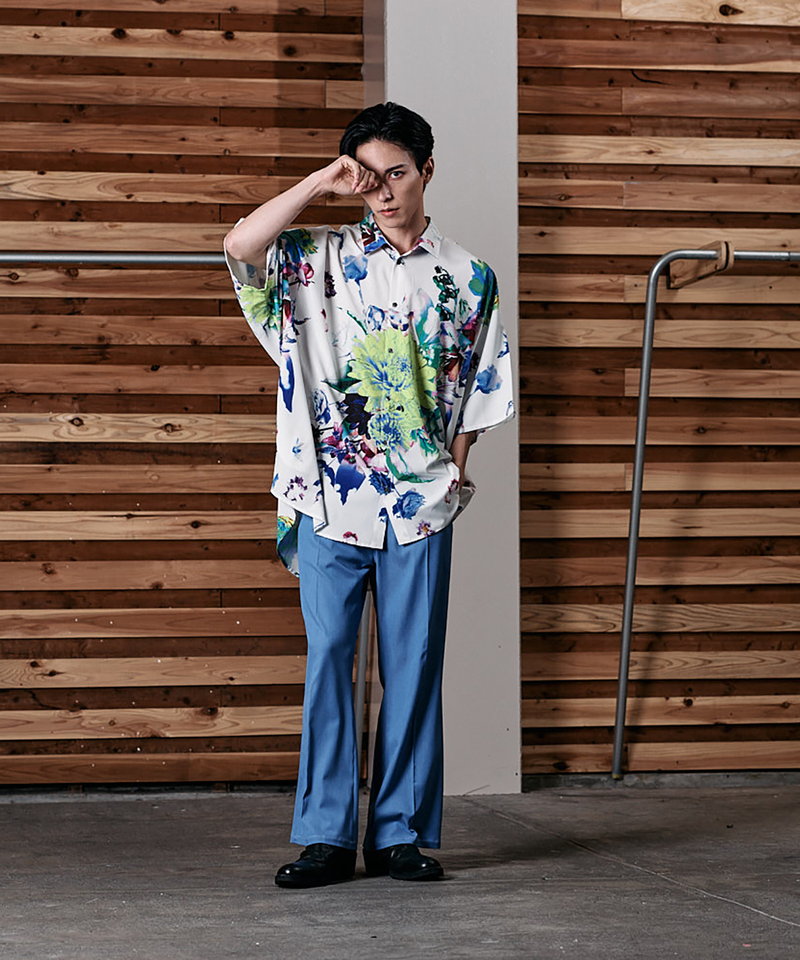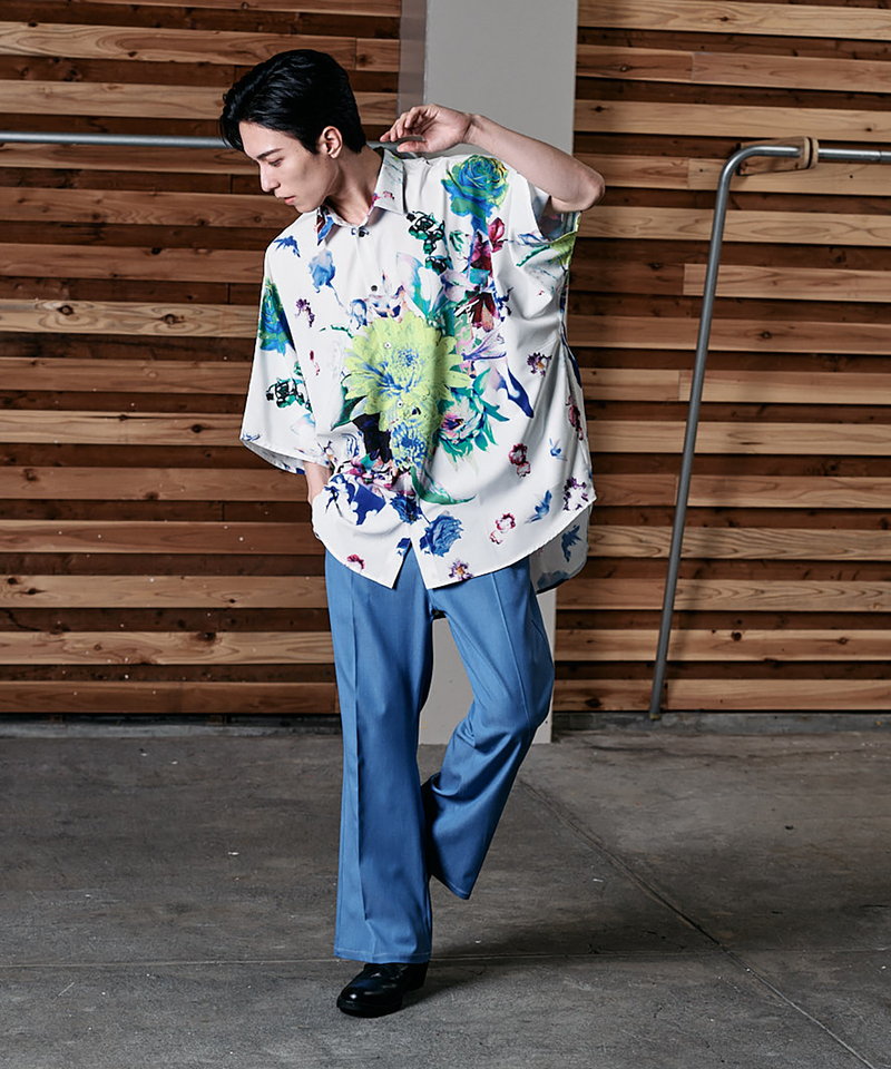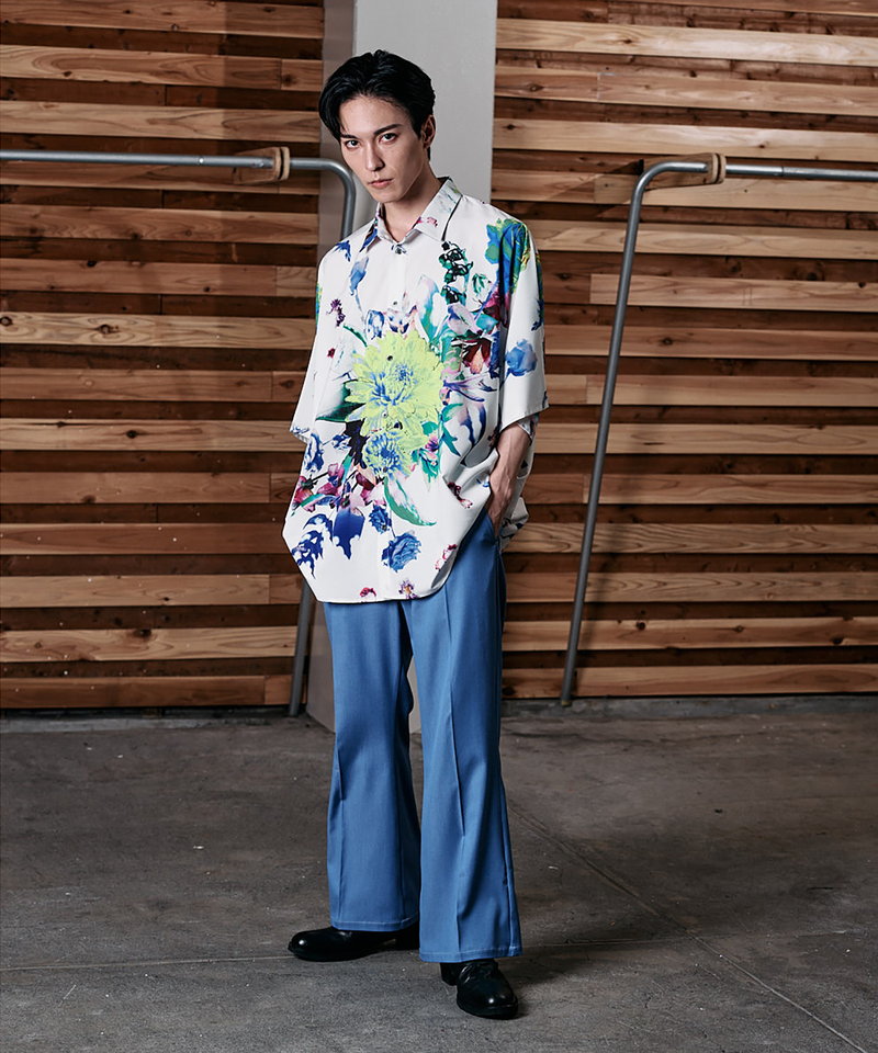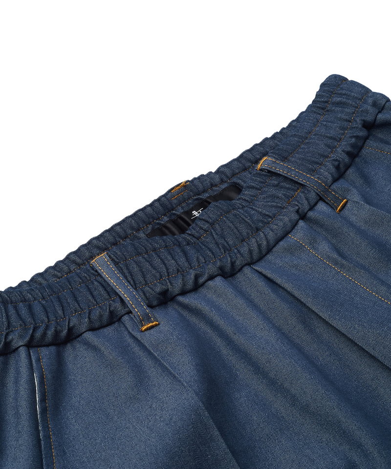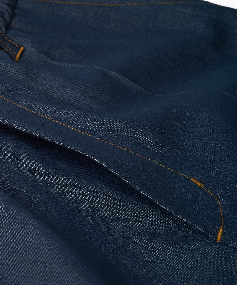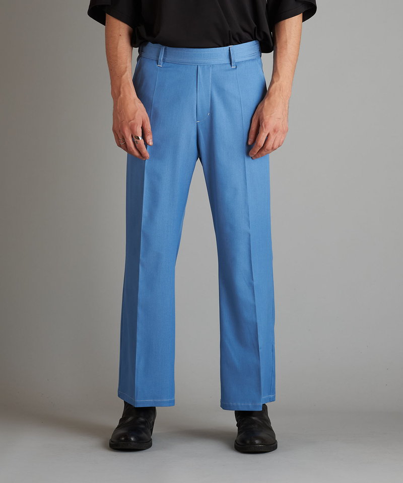 人気のワイドレッグシルエットを採用し、程よい太さから膝のラインを細くして裾に向かうに連れ広がるパターンにより強調し過ぎないゆるやかなフレアシルエットを演出。