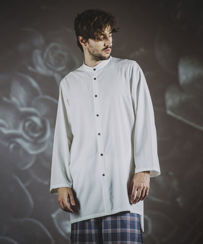 従来はコートの作りなので生地も厚く構築的なシルエットのアイテムを、とろみのあり柔らかい落ち感のある生地を採用する事で柔らかく軽量になりシャツ感覚で羽織れる仕様にアレンジを施している。