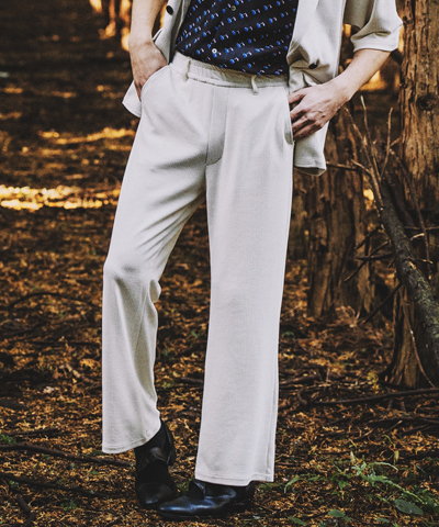 抉りを入れて湾曲した絶妙なサイズ感の襟と身頃のシルエットがヴィンテージライクなシャツの素材感とマッチした一着。