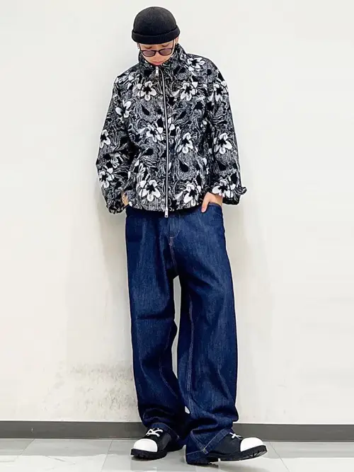 トラックブルゾンのようなスタンドカラーとオーバーサイジング、全面に使用したゴブラン生地でエフォートレスかつ華やかなムードを演出する本作。