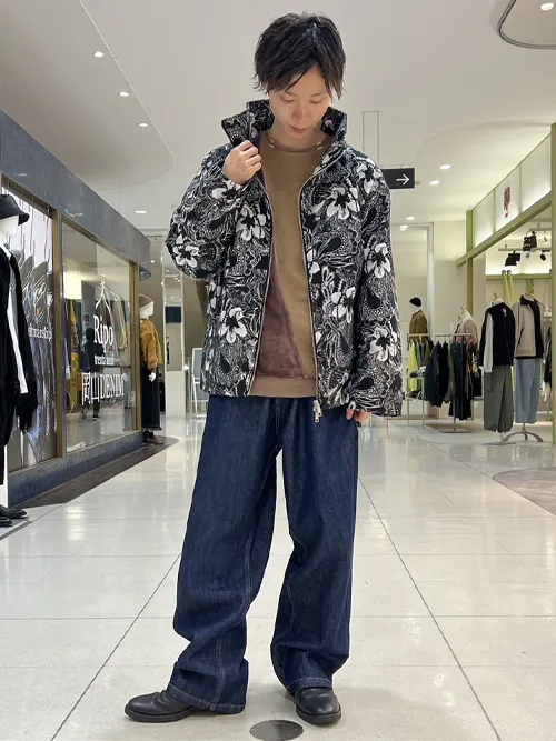 モノトーンながら存在感抜群の立体的な表情で奥行きのある織りが目を引くスタンドカラーブルゾン。
