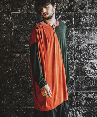 レイヤードした時にアウターの隙間からさりげなく覗かせる切替バランスが個性をプラスしてくれる。