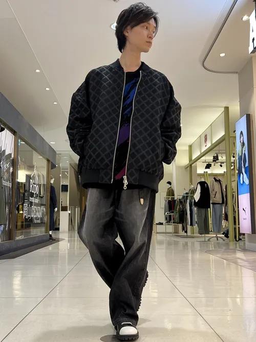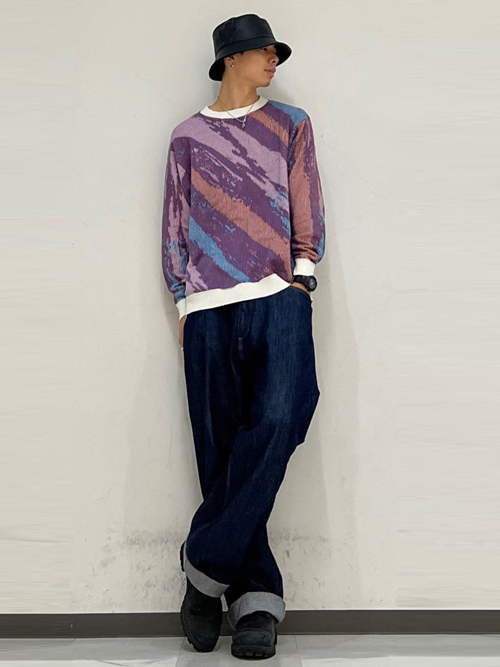 色彩豊かな表面とノイジーでデジタル感のある裏面で、その日の気分で2通りの着こなしが楽しめる遊び心溢れる一着。