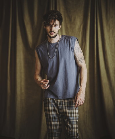 リバーシブル着用も可能な仕様にインサイドアウトの手法を取り入れ、リンキング箇所を表面に出し、デザインのアクセントとした。