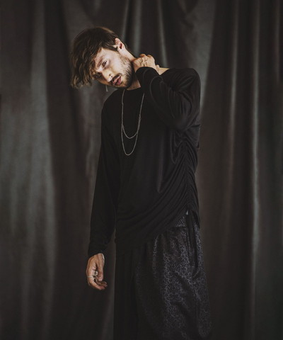 異素材を同系色でランダムに切り替えたデザインは一枚で着用しても様になり、ゆとりを持たせたドルマンスリーブシルエットを採用したことでリラクシーな雰囲気を演出。アウターを選ばない適度な厚みの素材感と各素材の表情の変化で上品な印象にも魅せてくれる頼り甲斐のある一着。