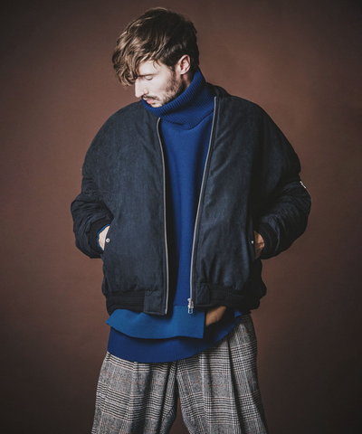 シンプルなデザインと同色のシンセティックレザーのパイピング仕様で統一感のある本作は、身頃から流れる様に一体化した大ぶりなフードが目を惹くアイテム。