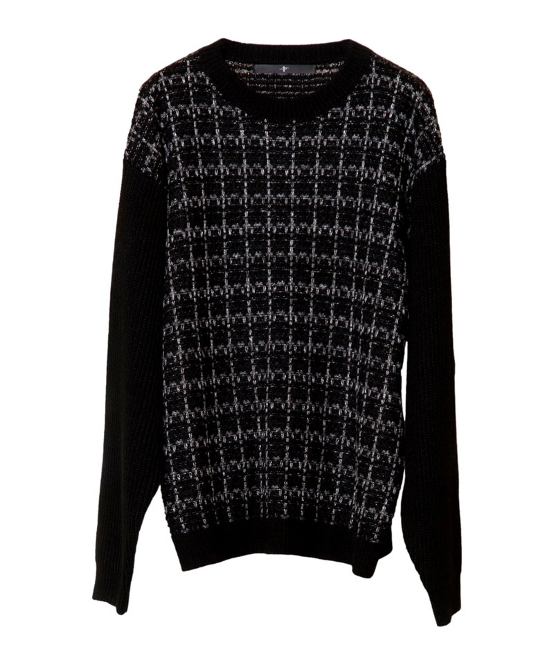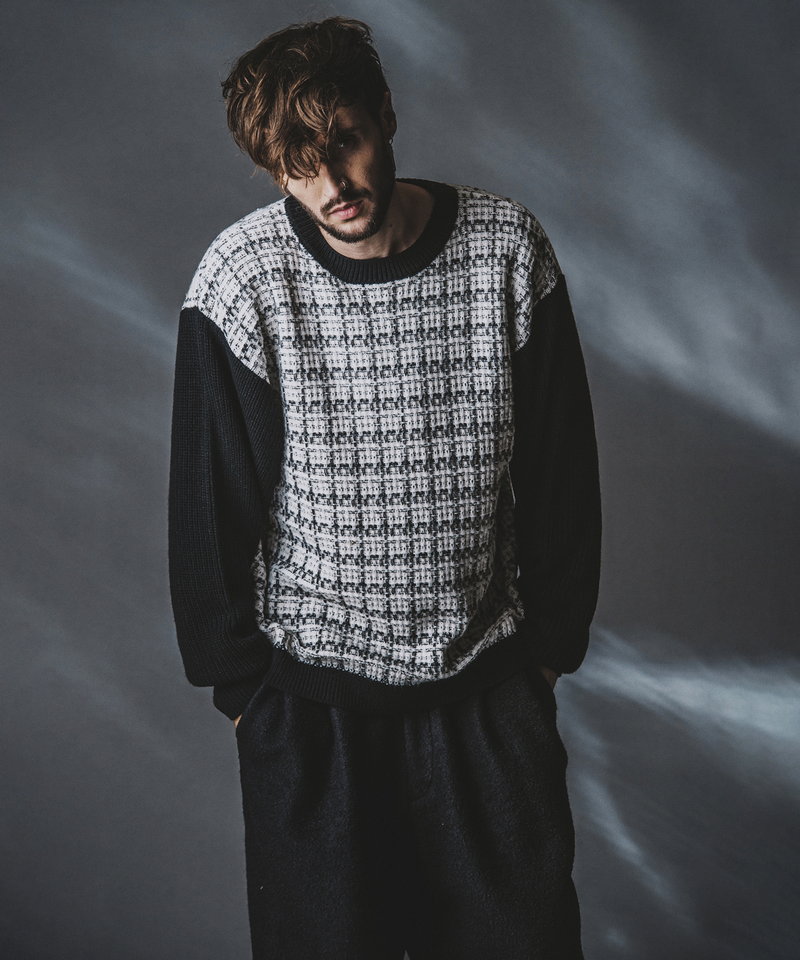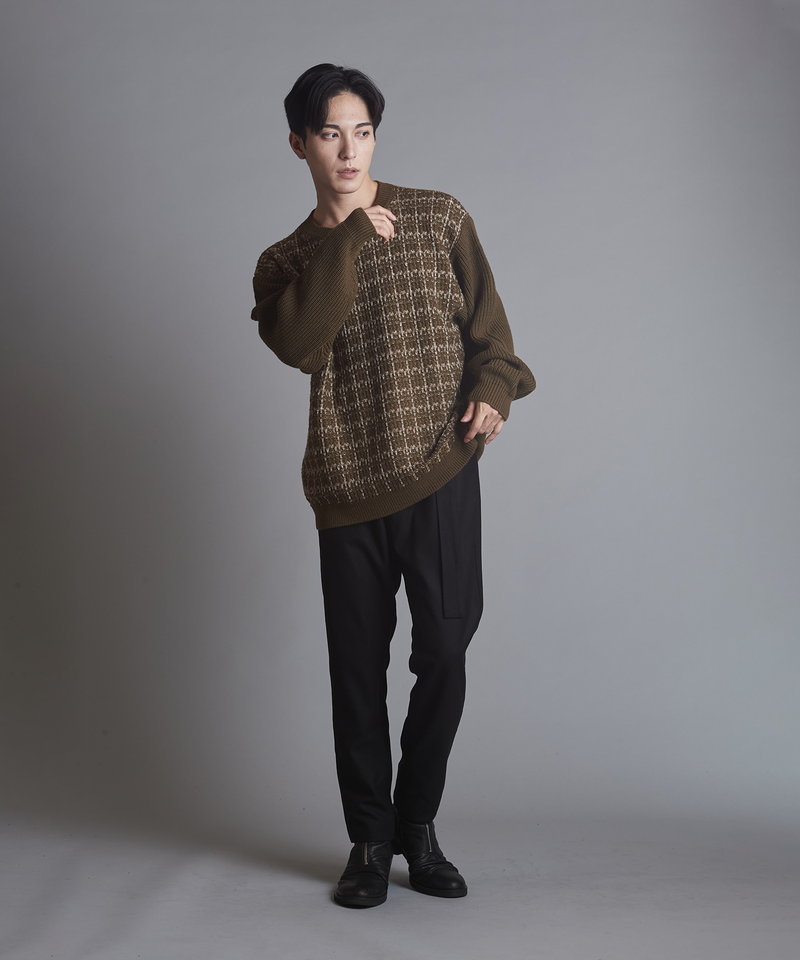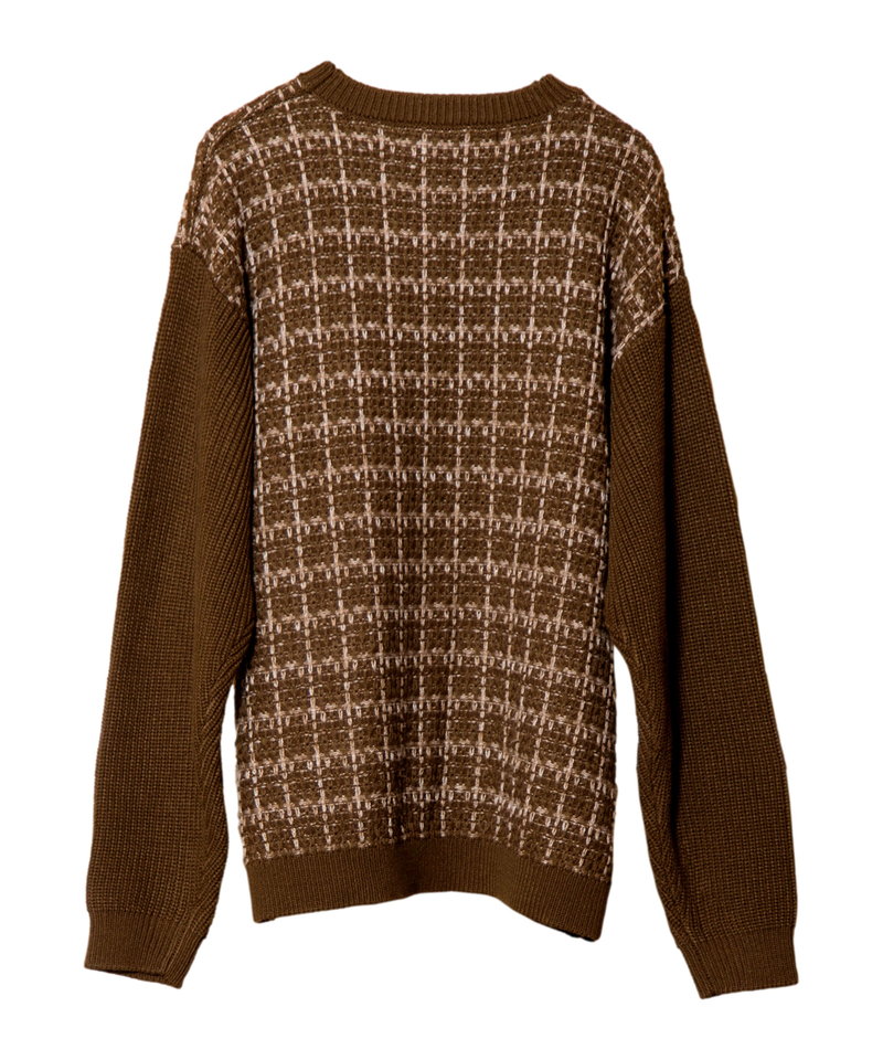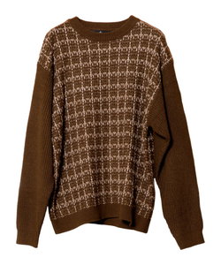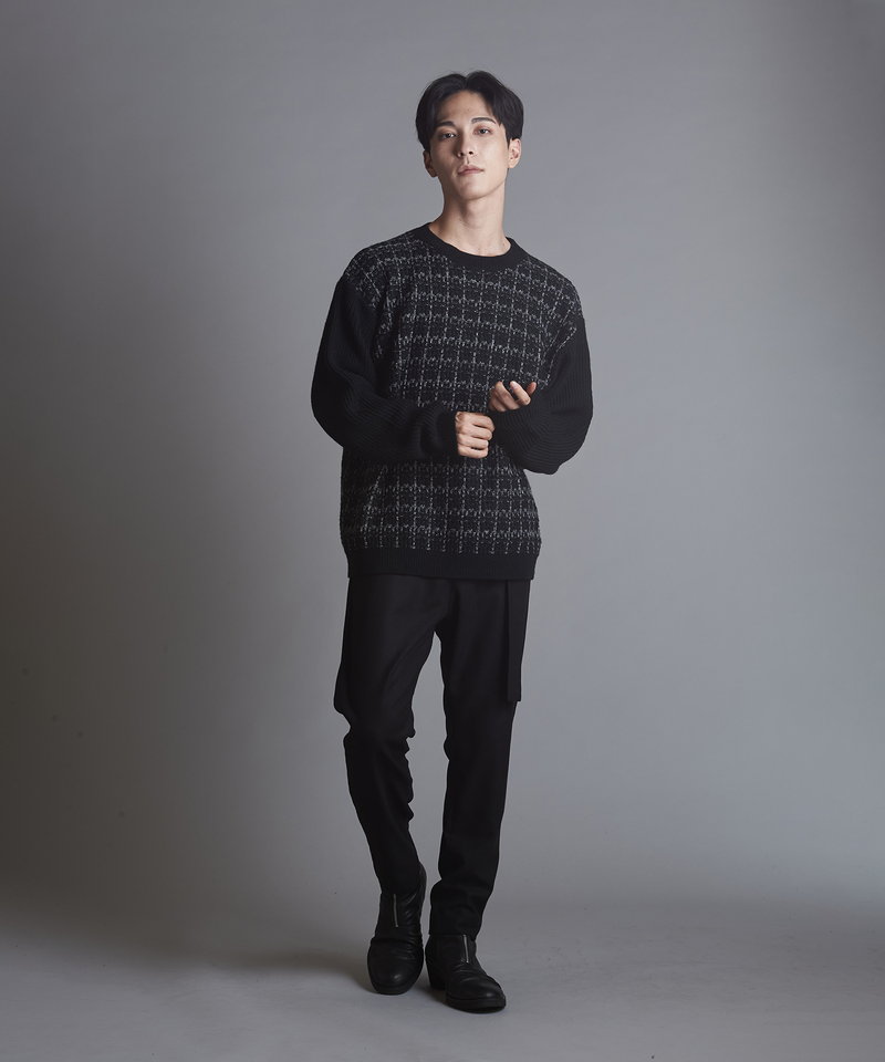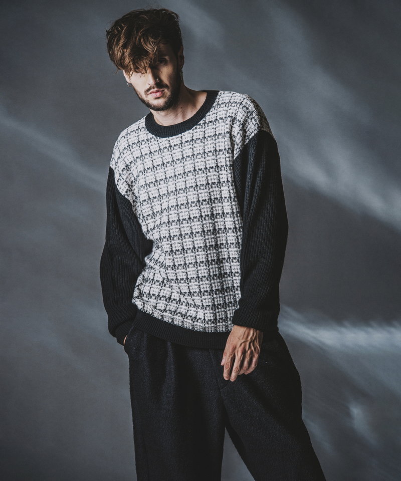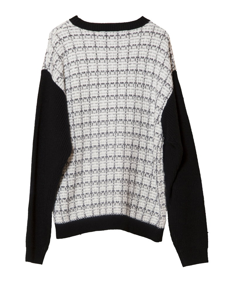 質感の異なる2種類の糸を組み合わせて、ツイード柄を表現したプルオーバーニット。