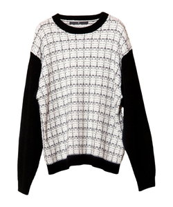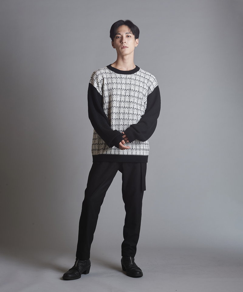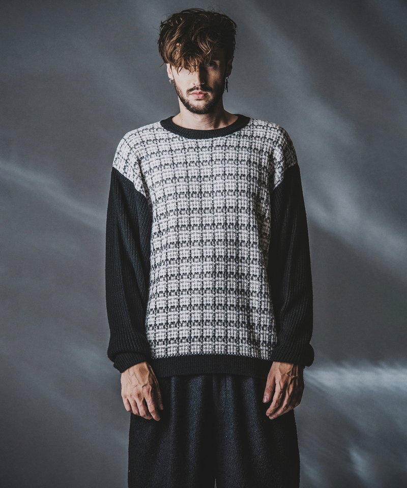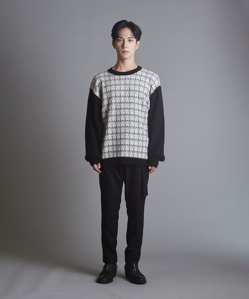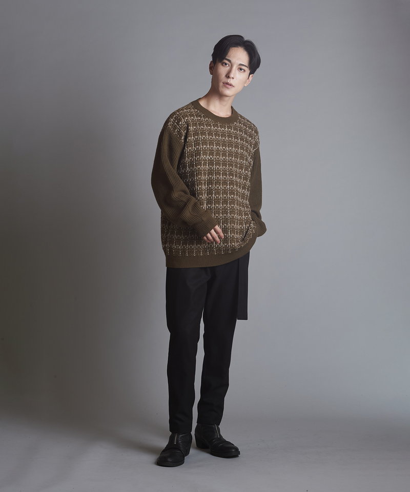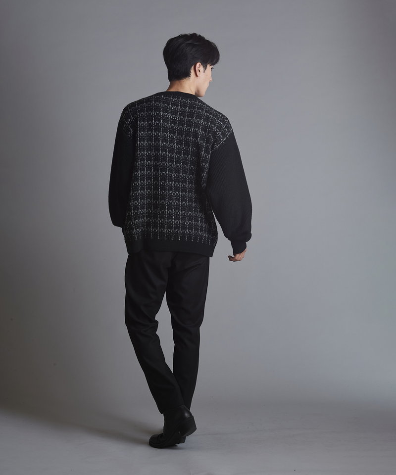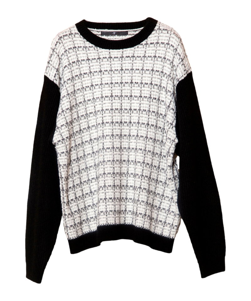 質感の異なる2種類の糸を組み合わせて、ツイード柄を表現したプルオーバーニット。