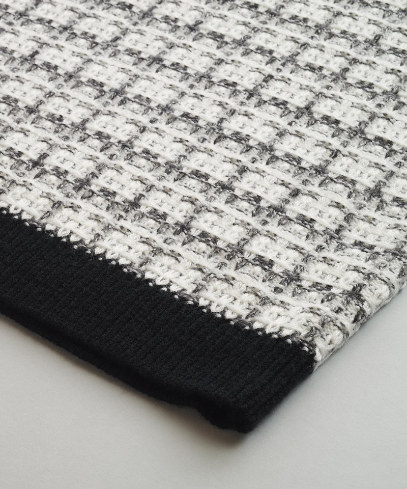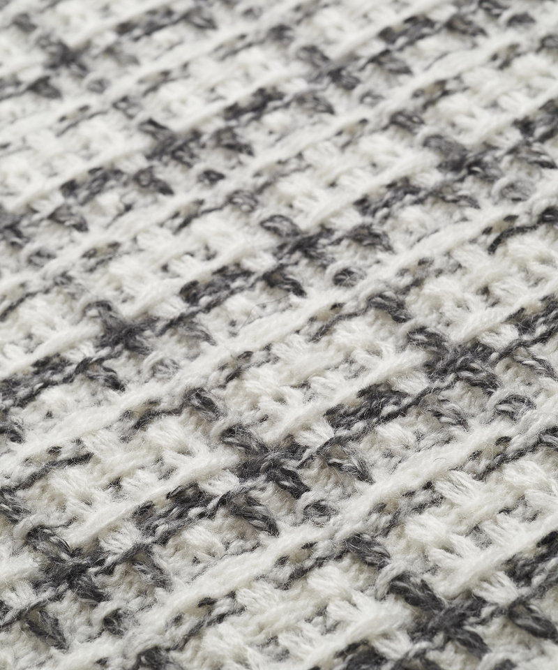 ラーベン編みに濃淡のついたMIX感のある糸を混ぜてツイードの風合いを表現した本作は、奥行のある上品な表情が魅力的なアイテム。