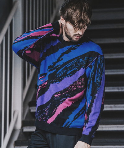 ドルマンスリーブダブルブレストJKTとのセットアップ着用が可能。