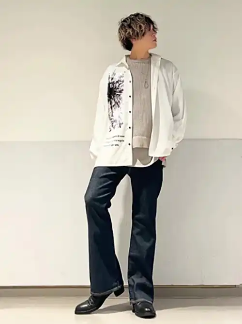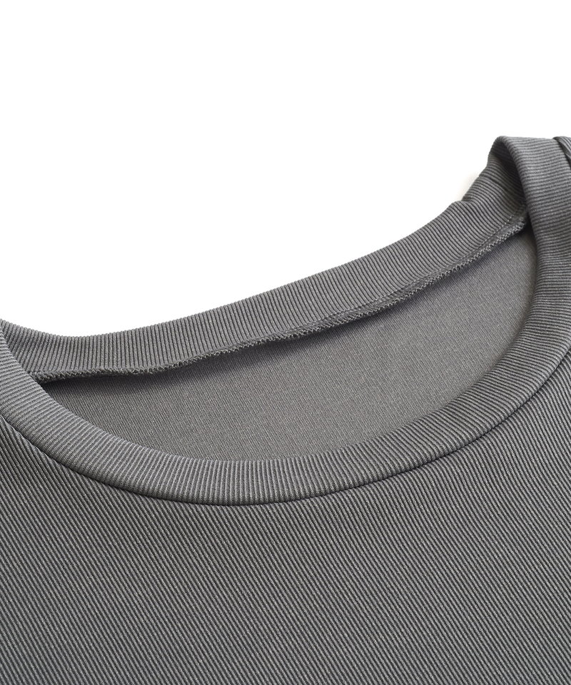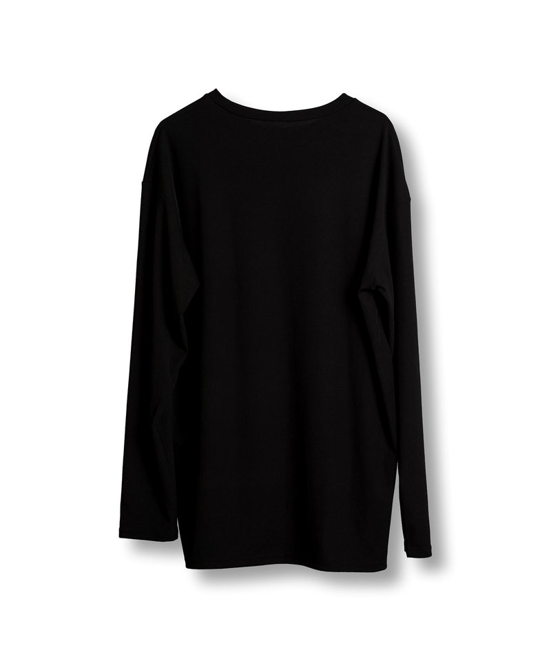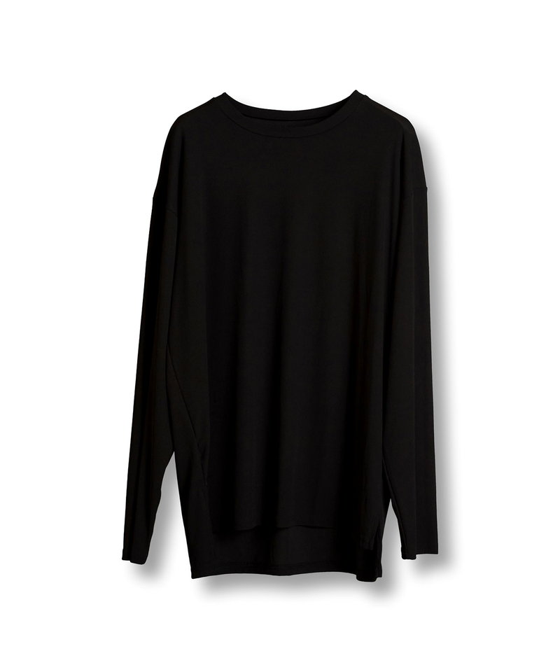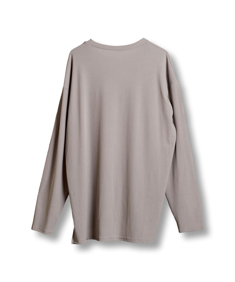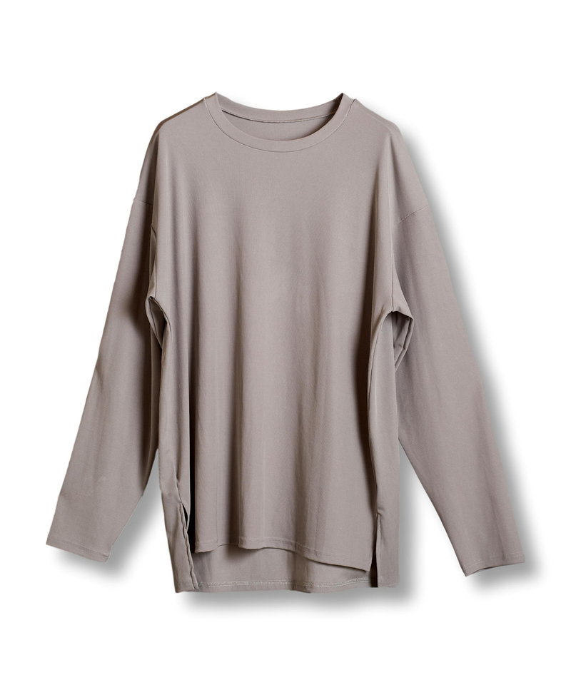 インナーには着丈の異なるロングカットソーをセットし、ニットとのレイヤードを考慮したやや長めの設定。