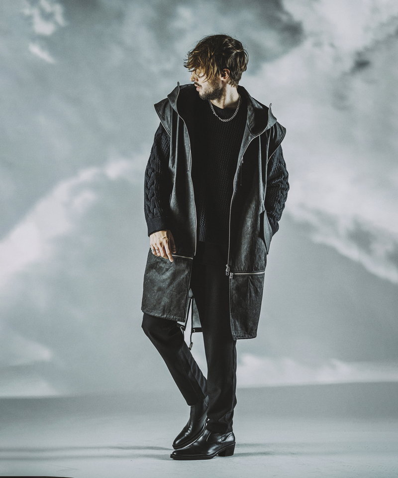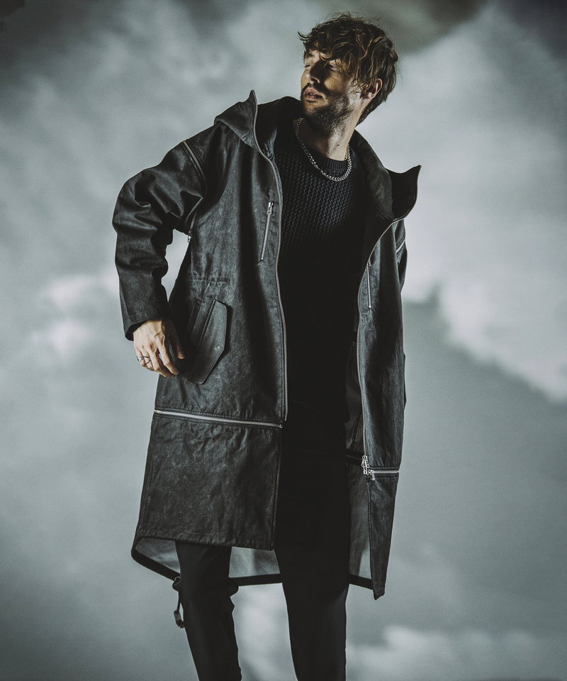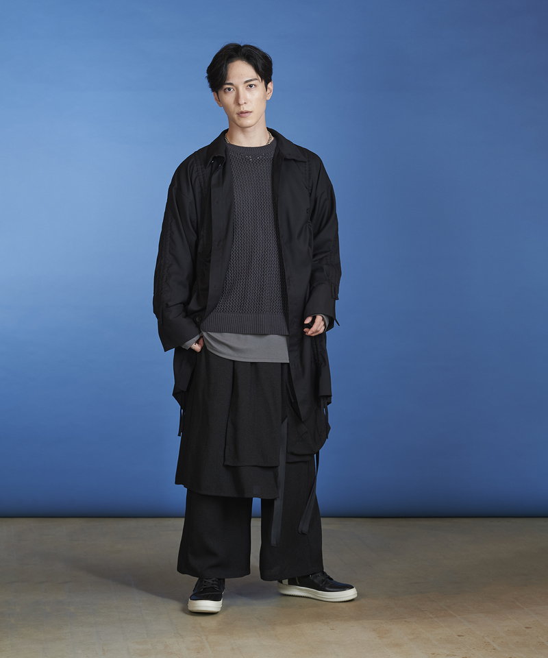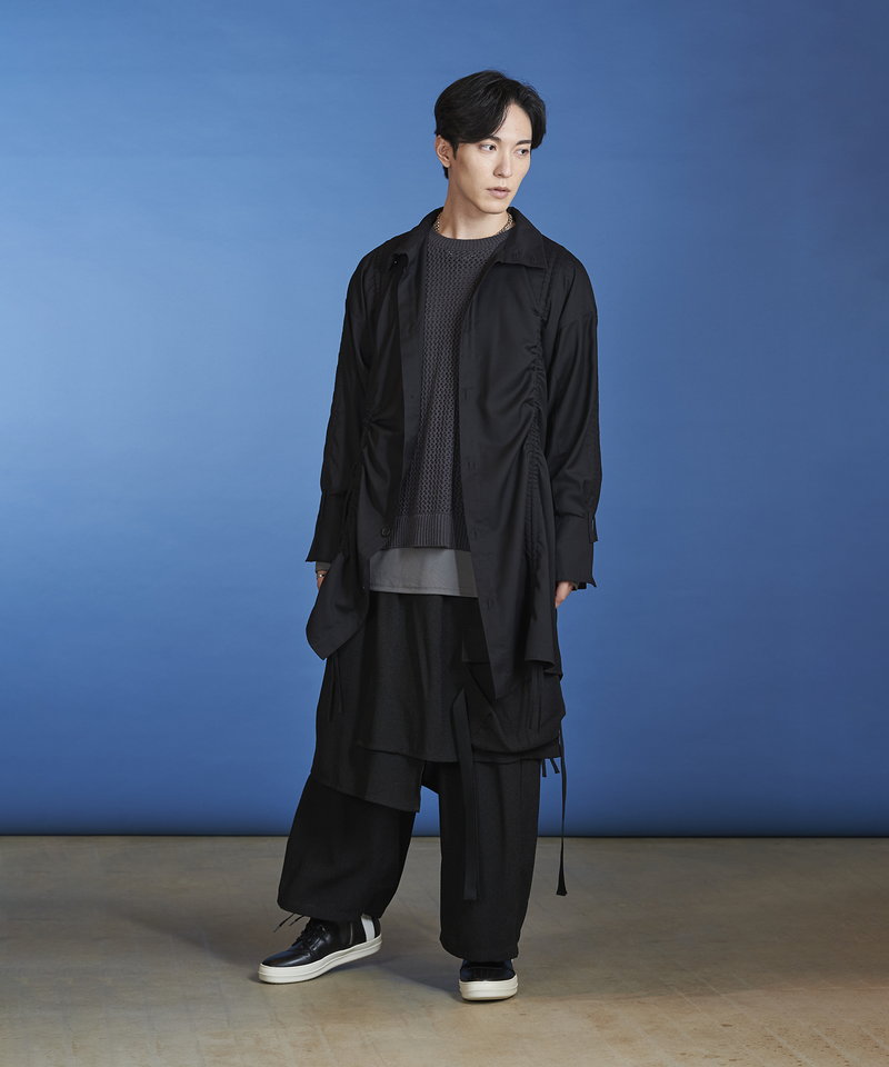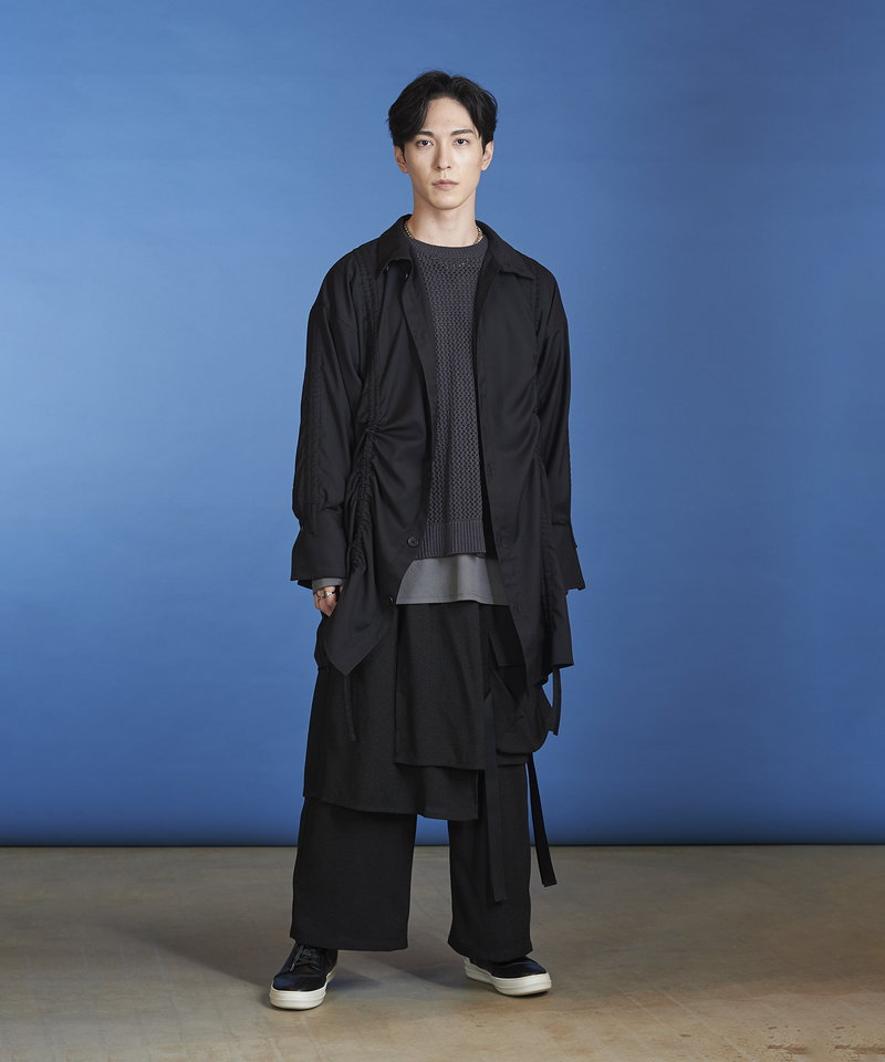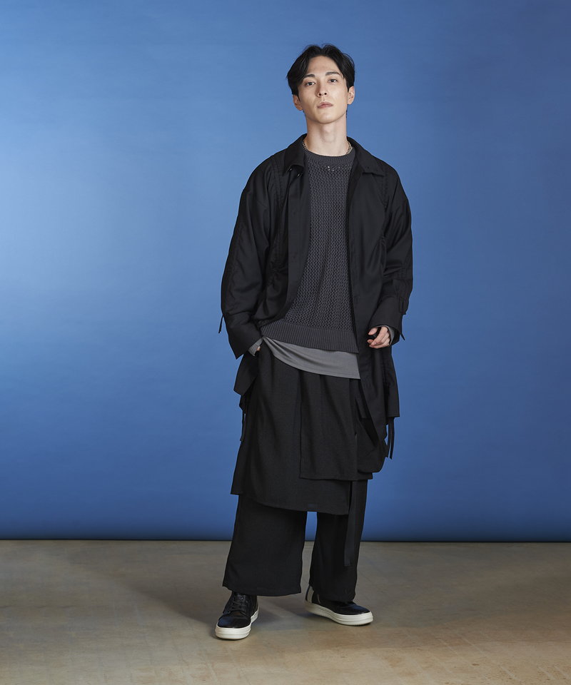 インナー、アウターともにサイドスリットをあしらい、着丈にも前後で長短差を付けた仕様でサイドからのヴィジュアルにも拘ったアイテム。