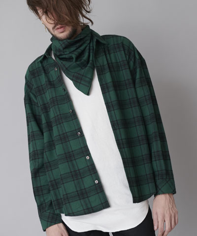 BIGシルエットをベースにネックラインは広くなっており着古した様なこなれ感のある雰囲気を表現した。
