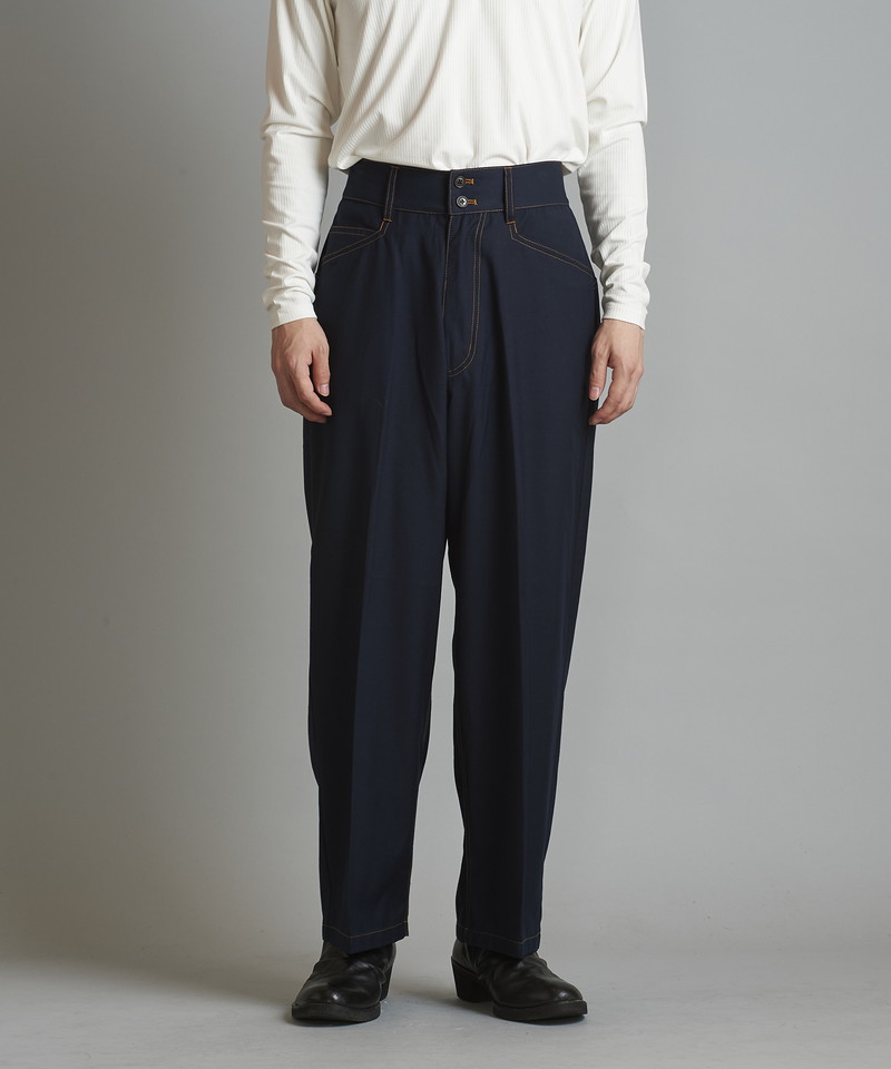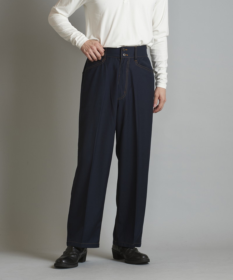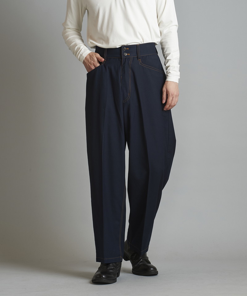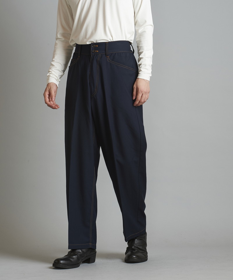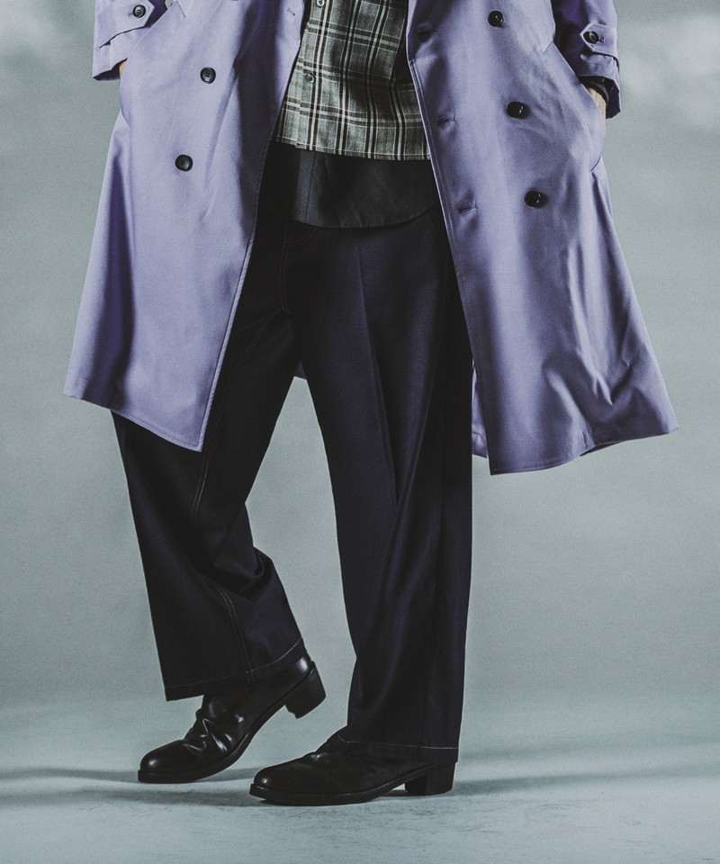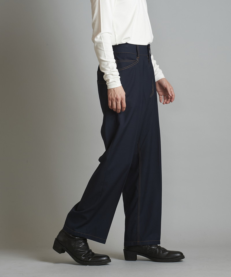 ステッチワークやカジュアルな5ポケットの仕様などワークパンツの様なディティールを随所に取り入れたデザインで、ドレス感を程良く中和した好バランスなアイテム。