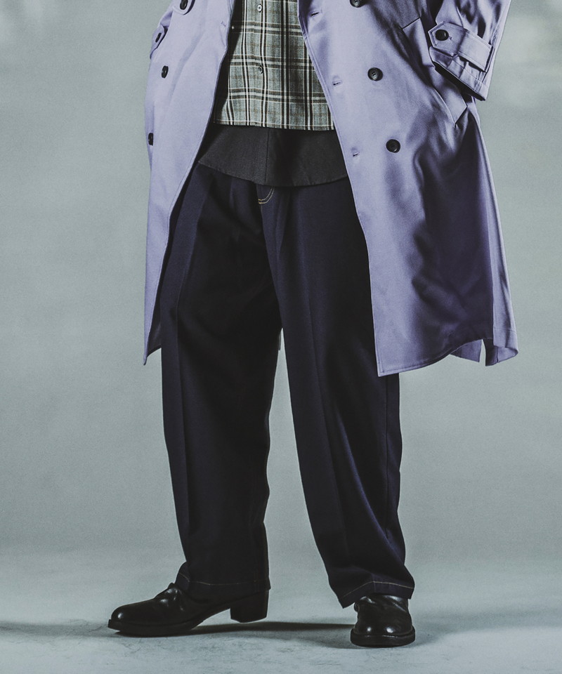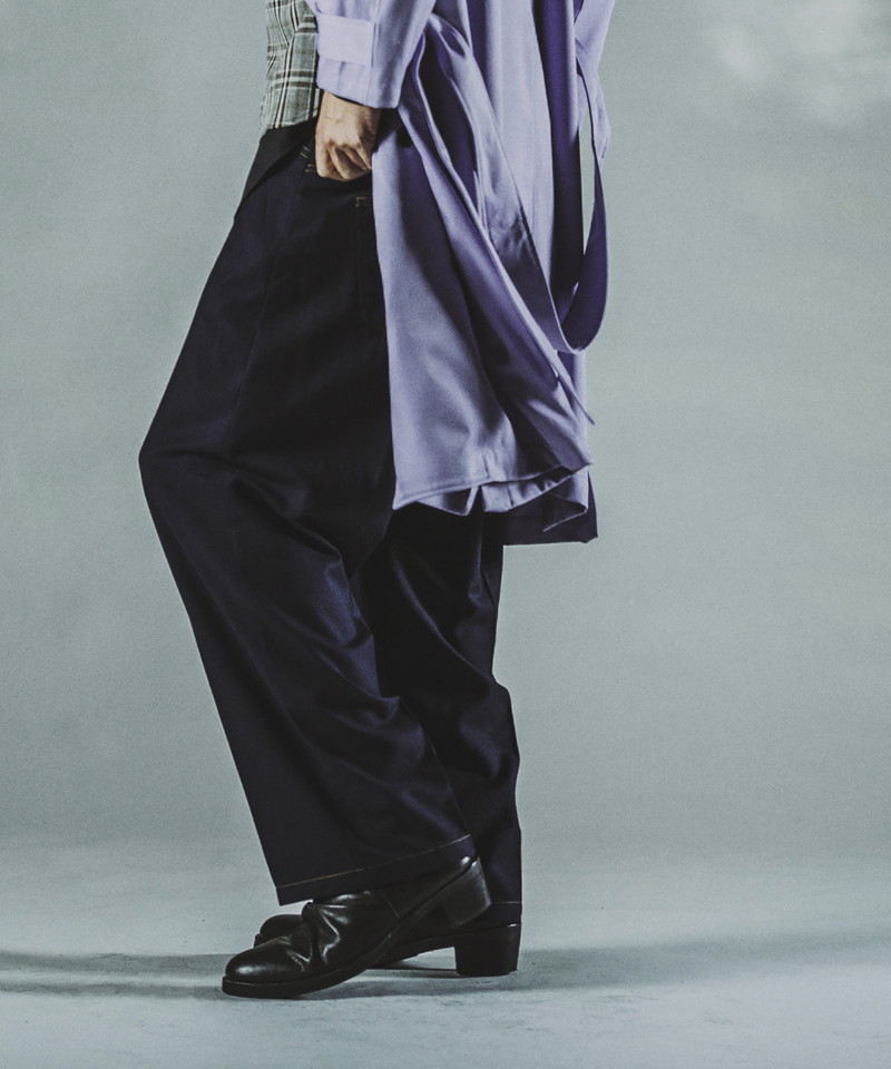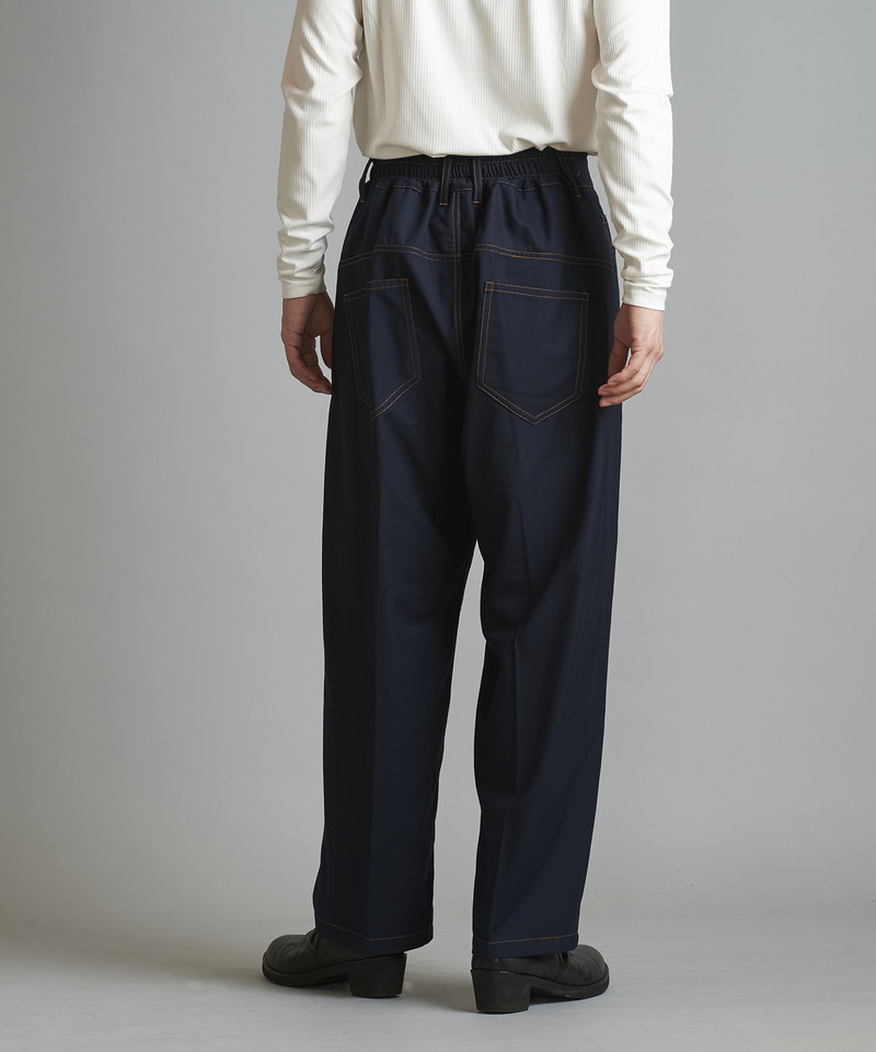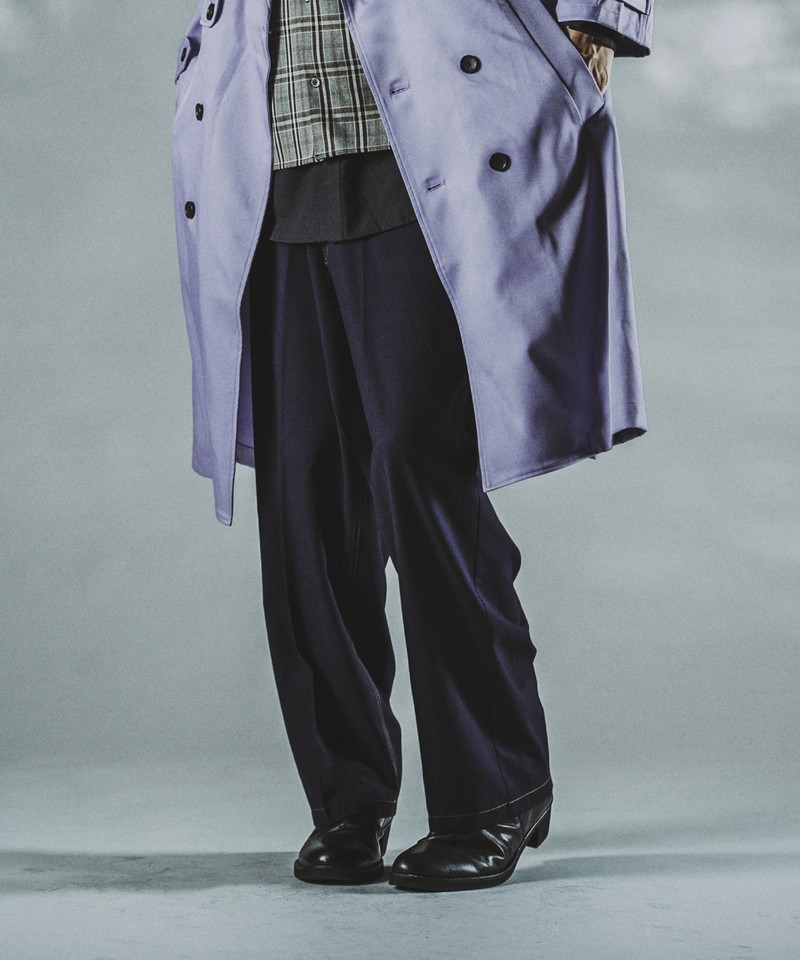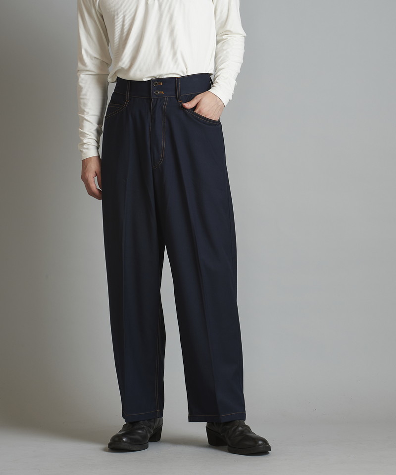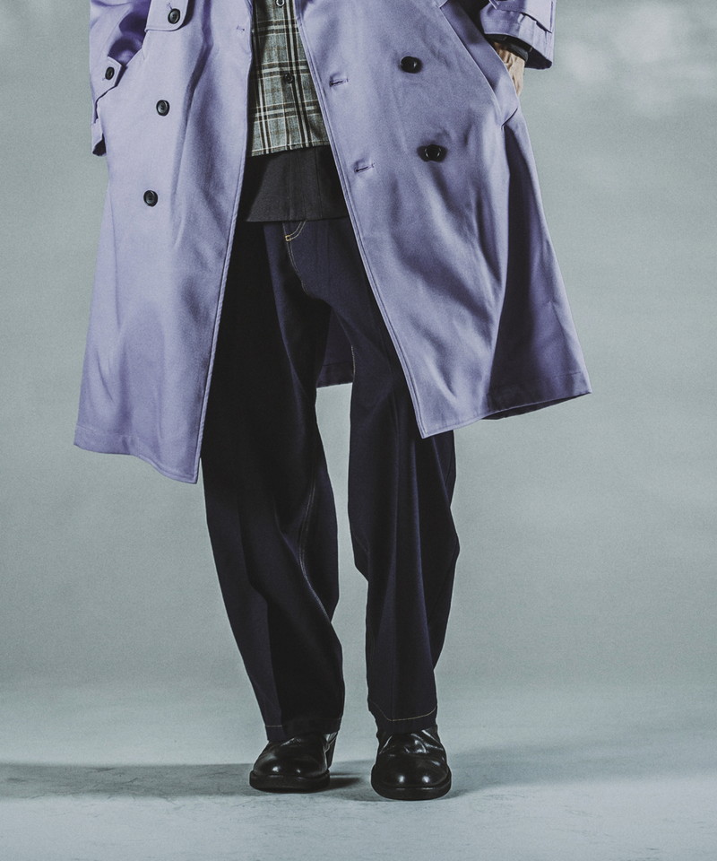ステッチワークやカジュアルな5ポケットの仕様などワークパンツの様なディティールを随所に取り入れたデザインで、ドレス感を程良く中和した好バランスなアイテム。