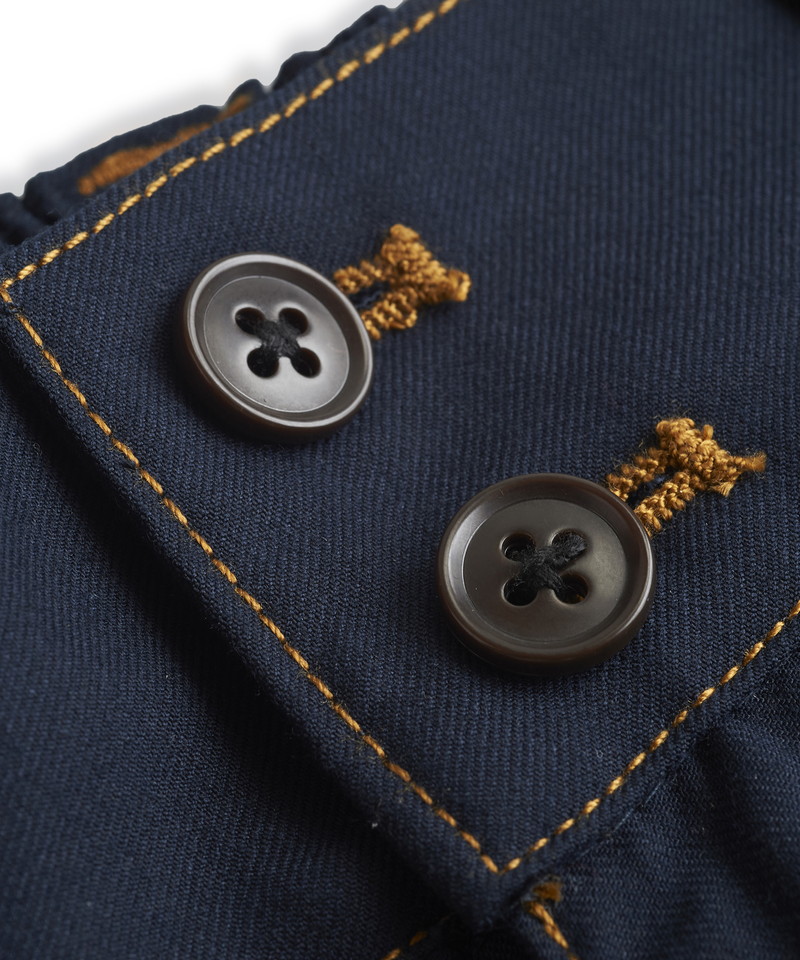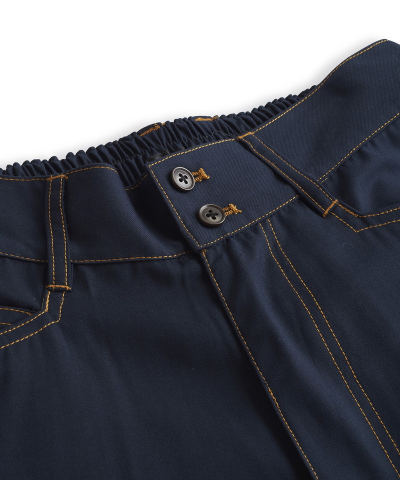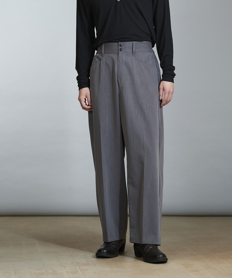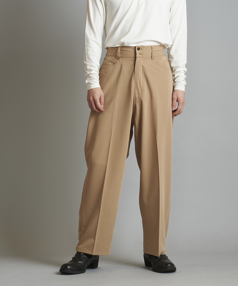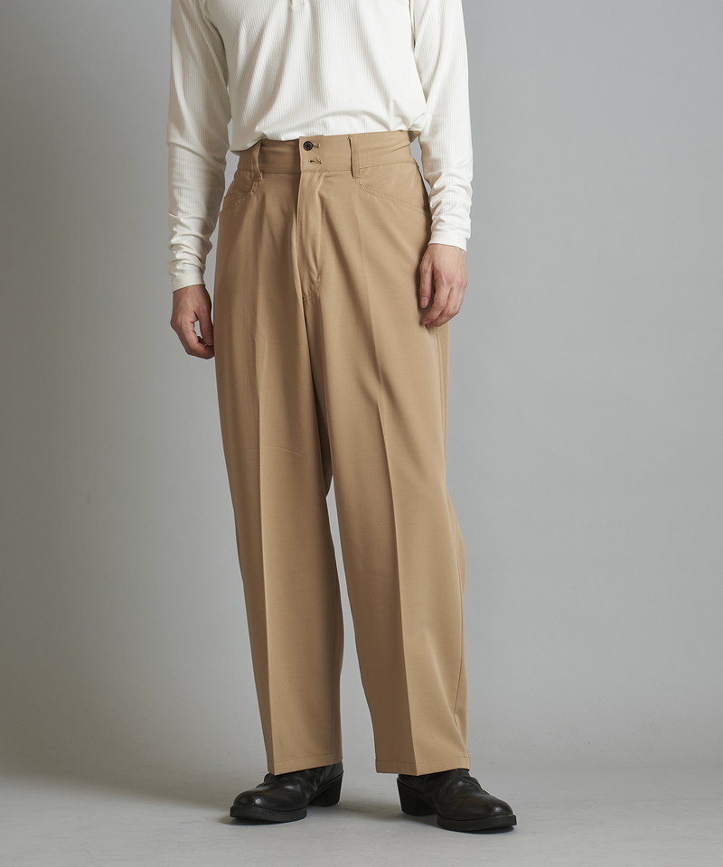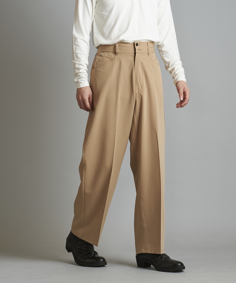 ステッチワークやカジュアルな5ポケットの仕様などワークパンツの様なディティールを随所に取り入れたデザインで、ドレス感を程良く中和した好バランスなアイテム。
