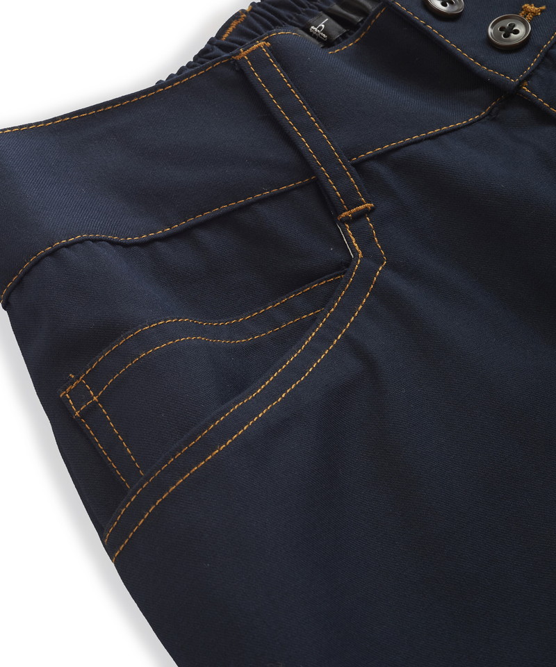 深めの股上設定で脚長効果も高く、右ポケットに配したコインポケットならぬ、スマホポケットはNO ID.ならではの時代背景を考慮した細かな気配り。