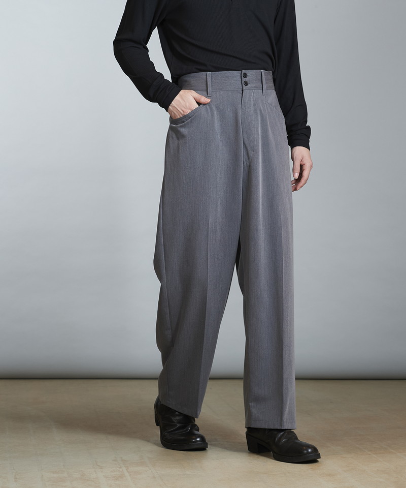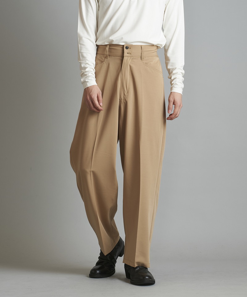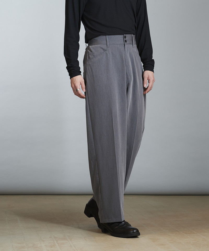 柔らかく上品な素材感とボリュームのあるワイドなシルエットが特徴的なトラウザーズ。