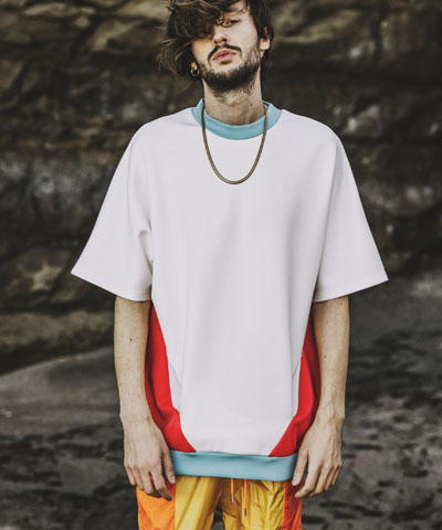 ブランドが得意とするマルチカラー切替は、着用した際のヴィジュアルに拘り、身頃から袖までが繋がるよう切替位置を揃えるなど細部まで配慮されたつくりにも注目。