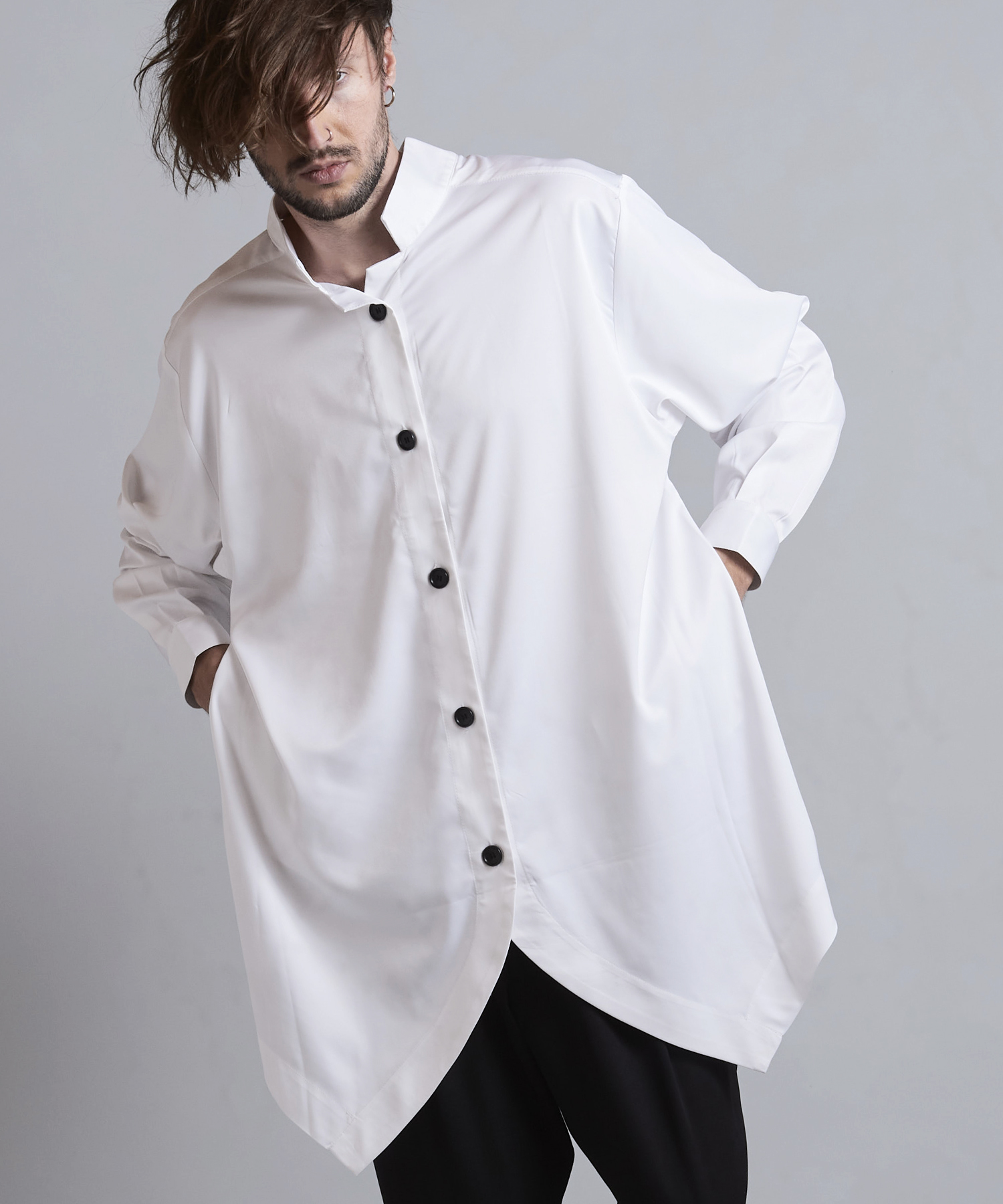 本作最も特徴的なディティールは変則的なバックスタイル、背面に大胆にあしらったレイヤード風の切替でミニマルなデザインにモードな印象をプラス。