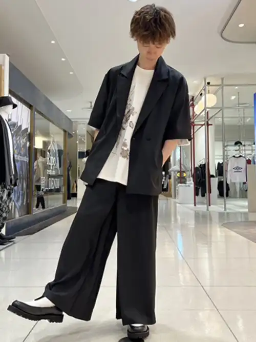 ハーフスリーブダブルブレストJKTとセットアップ着用が可能。