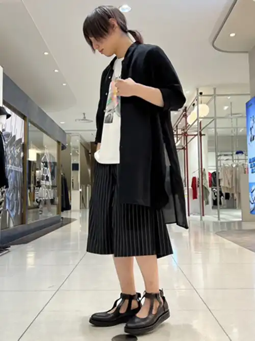 従来のメリージェーンは女性らしさを強調するシャープなシルエットになっているが本作はメンズらしさを主張する為コバの幅を広く取り幅広でボリュームのあるシルエットを演出。