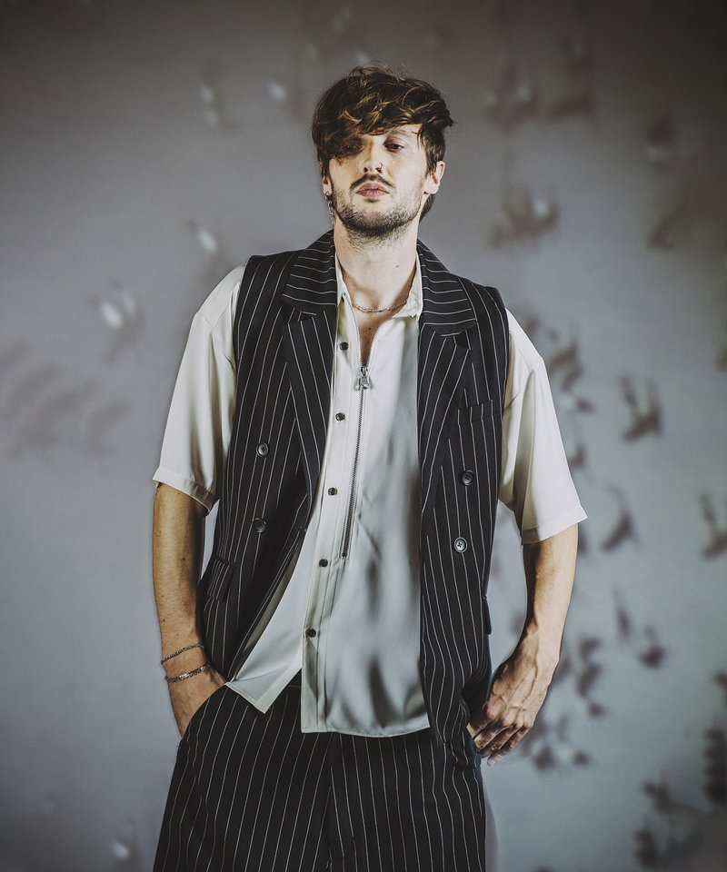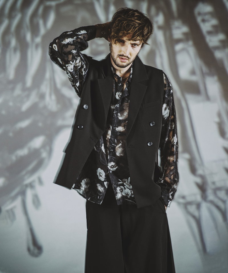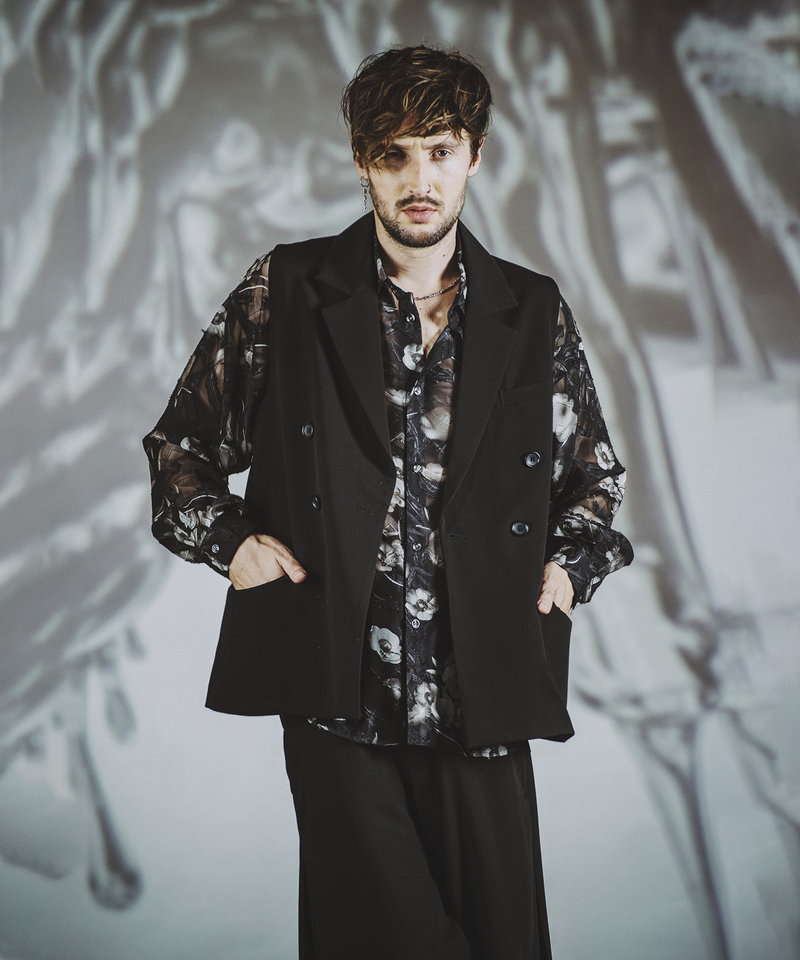 2つボタンのダブルブレストでミニマルな表情に仕上げた本作はボクシーなシルエットでクラシカルな印象も与えてくれる。