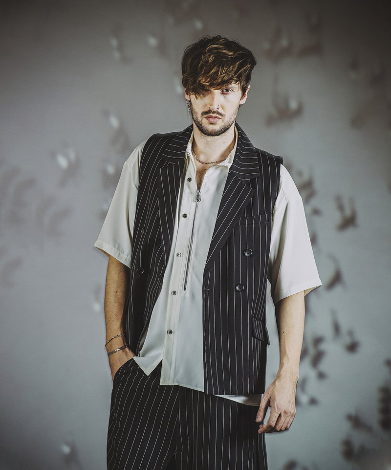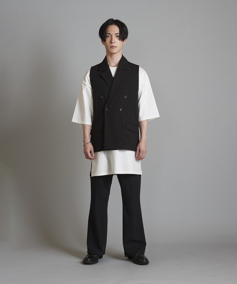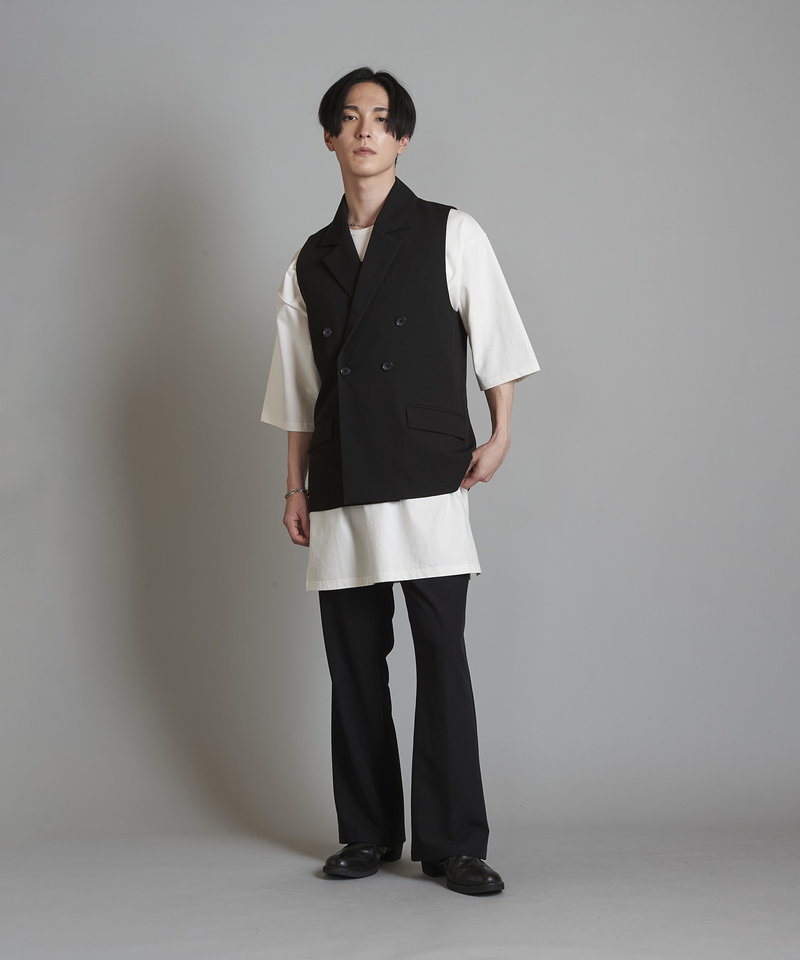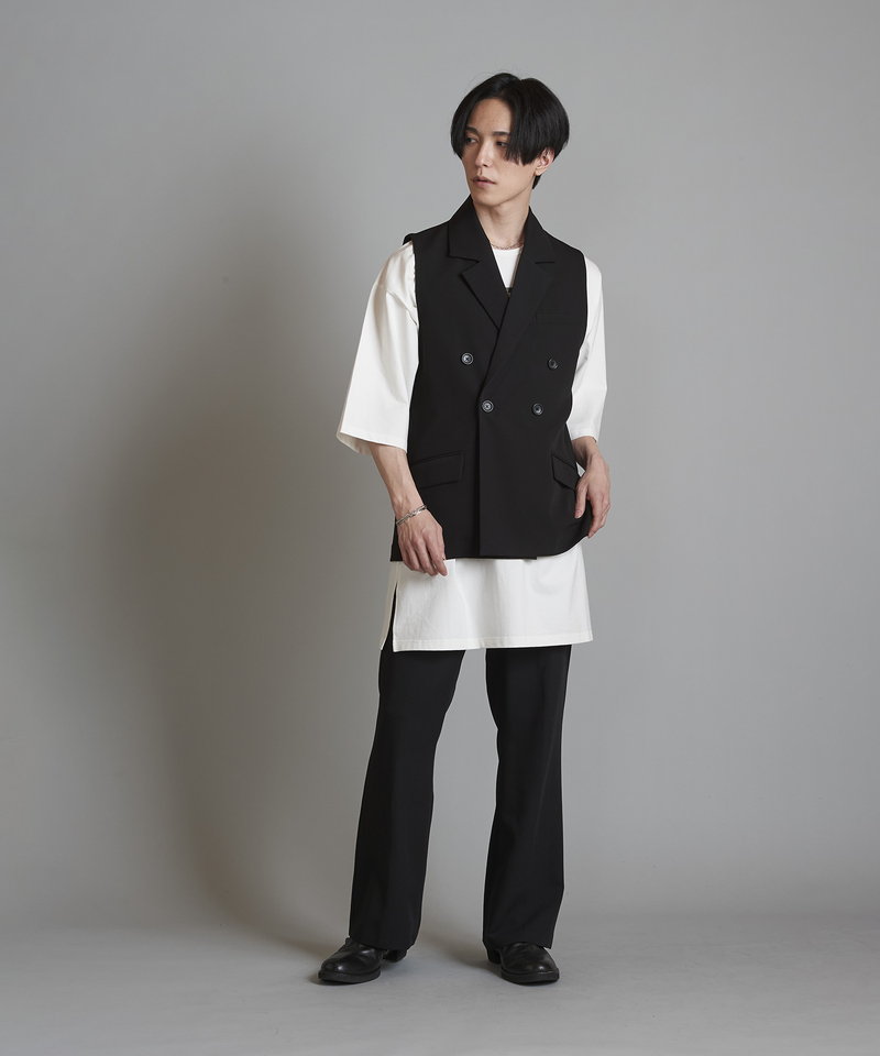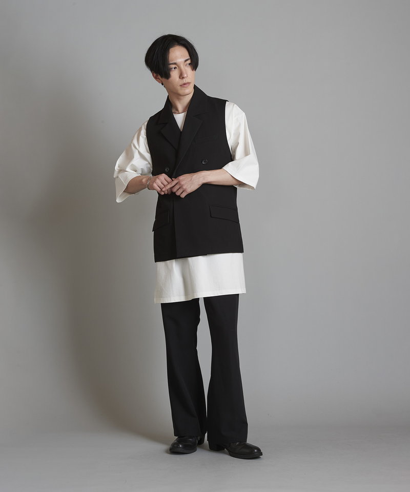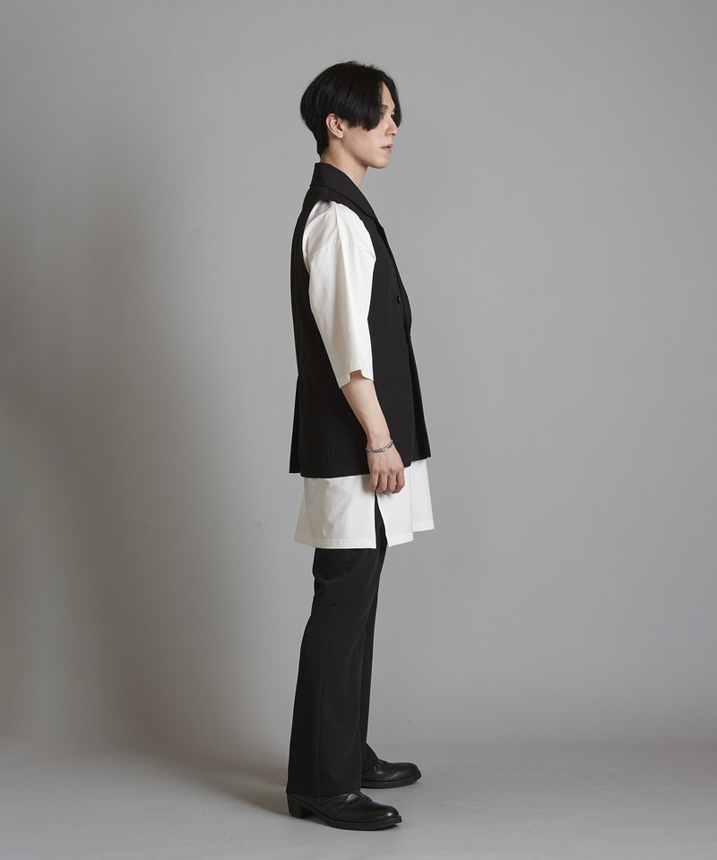 様々なレイヤードスタイルを楽しめるスリーブレスジャケット。