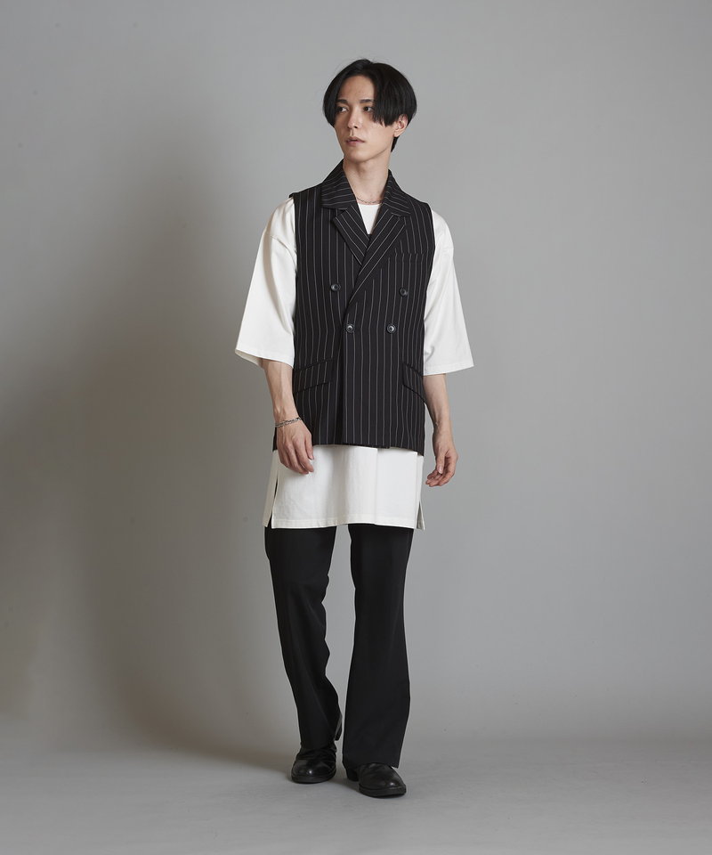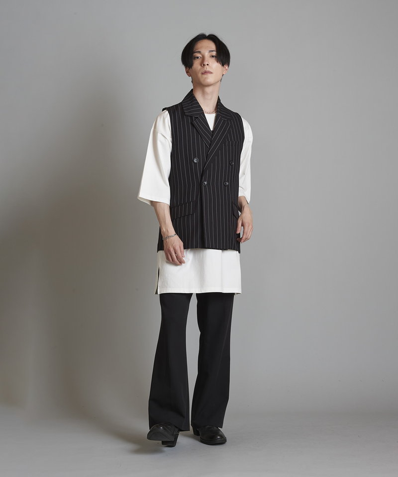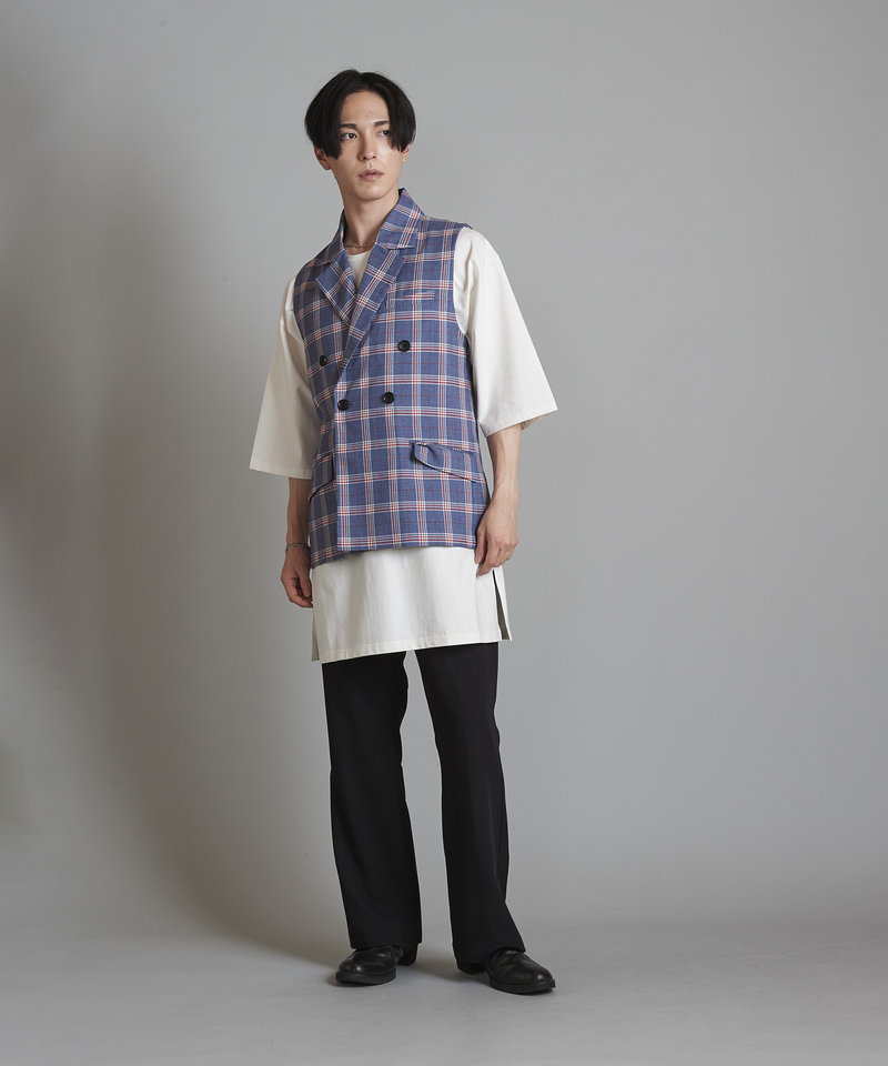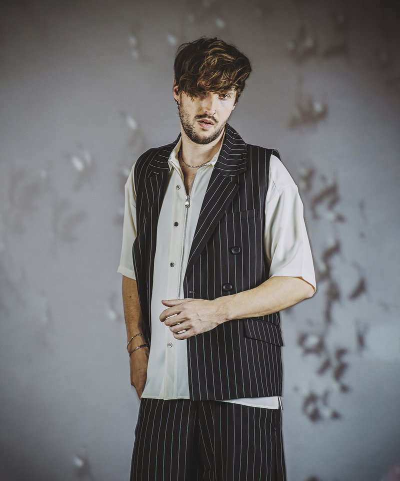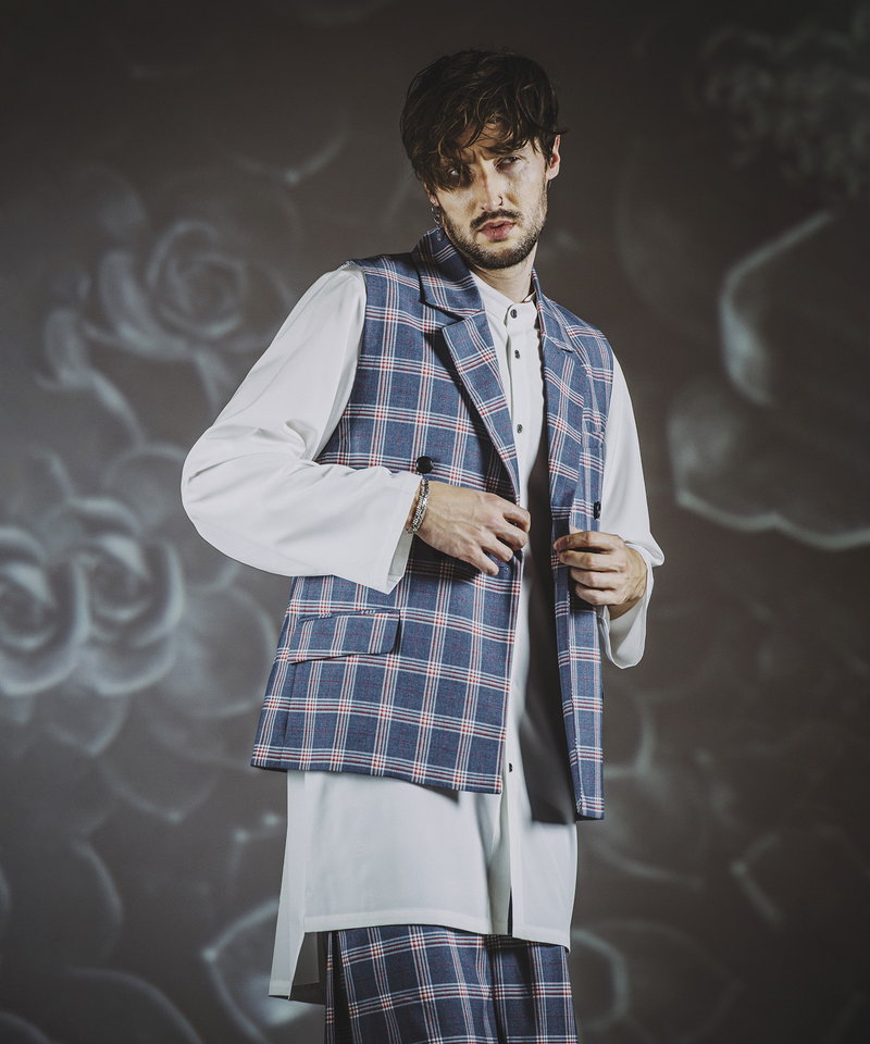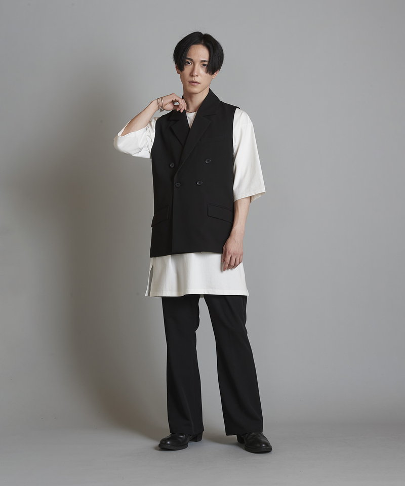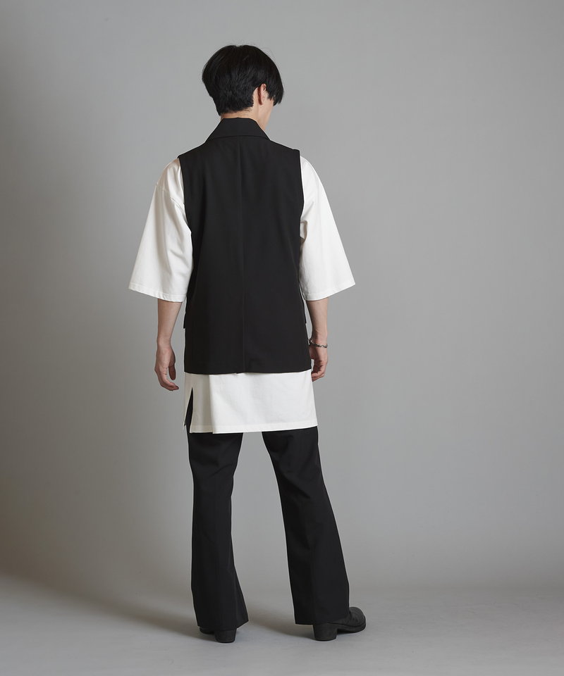 様々なレイヤードスタイルを楽しめるスリーブレスジャケット。