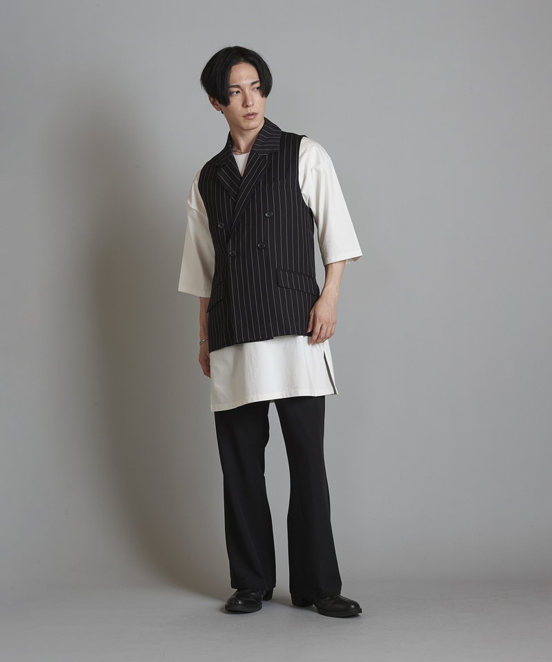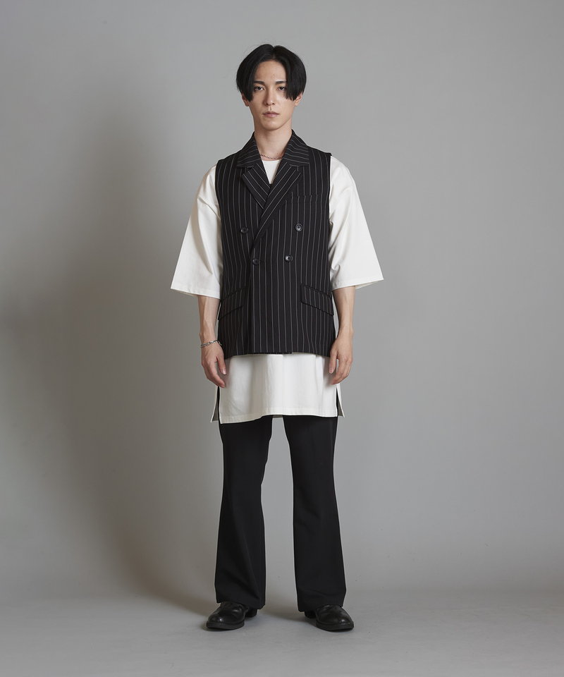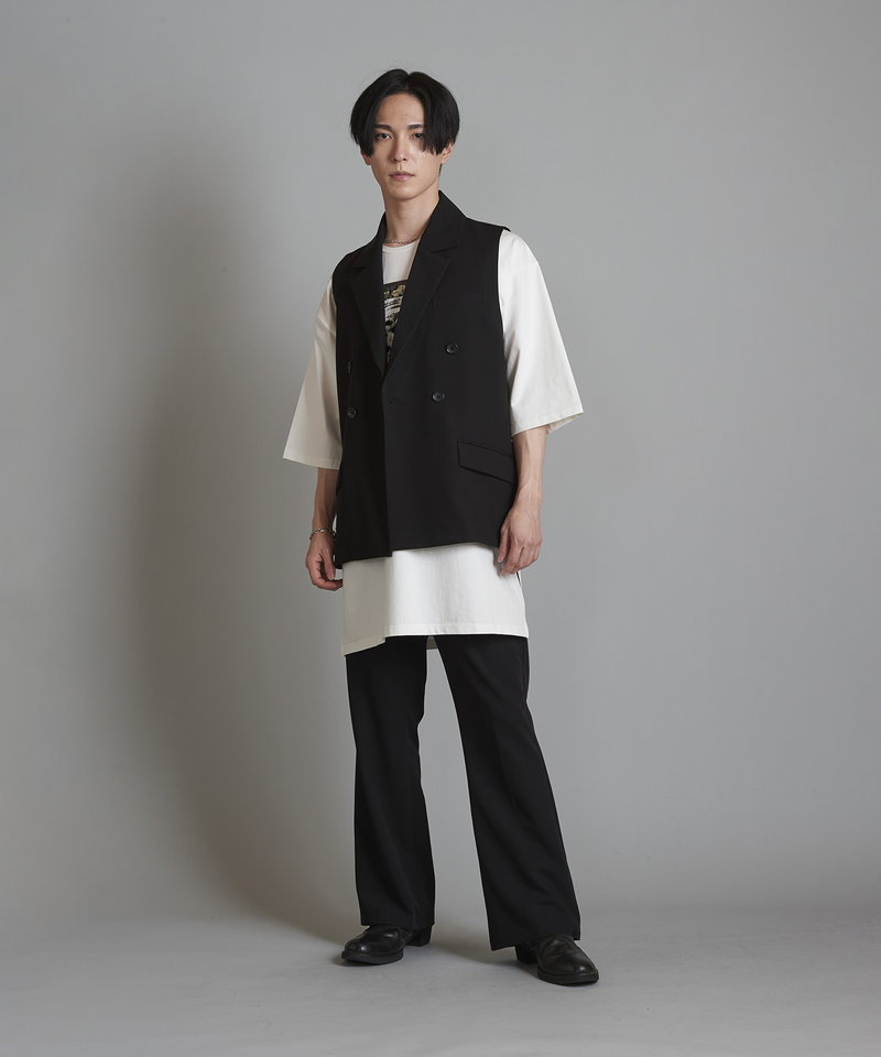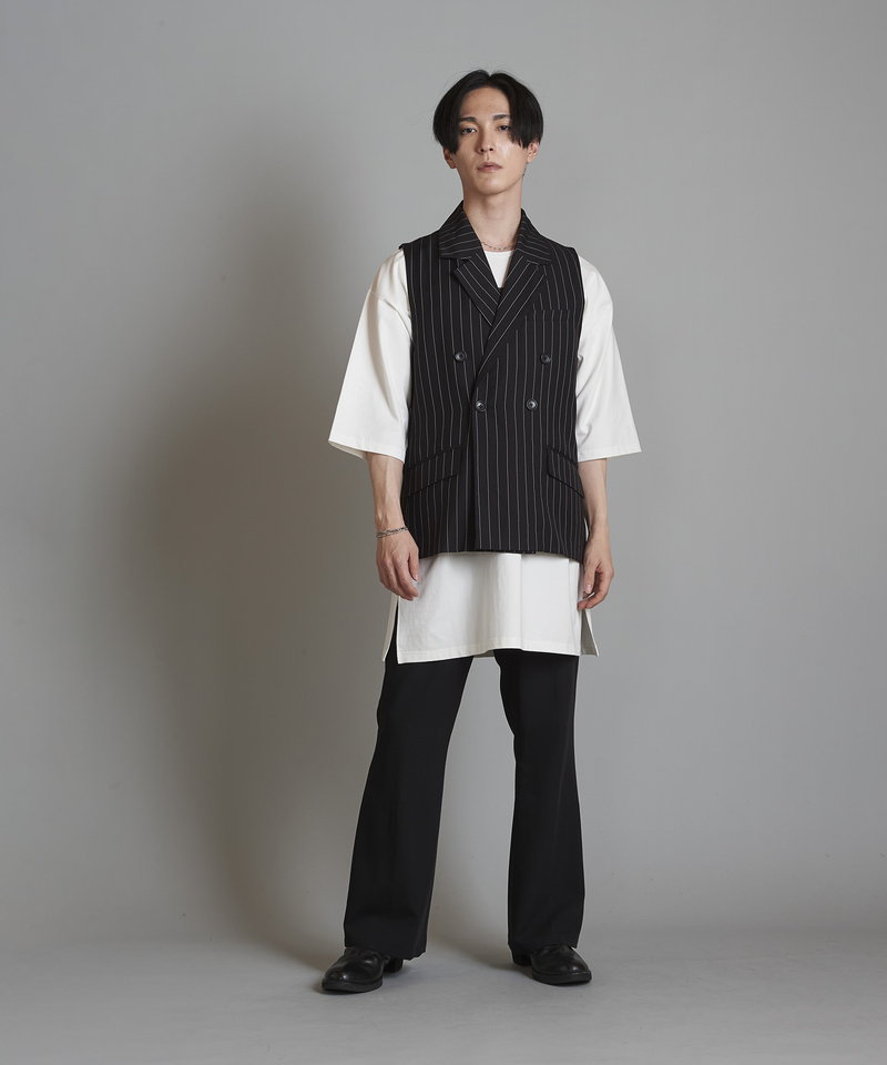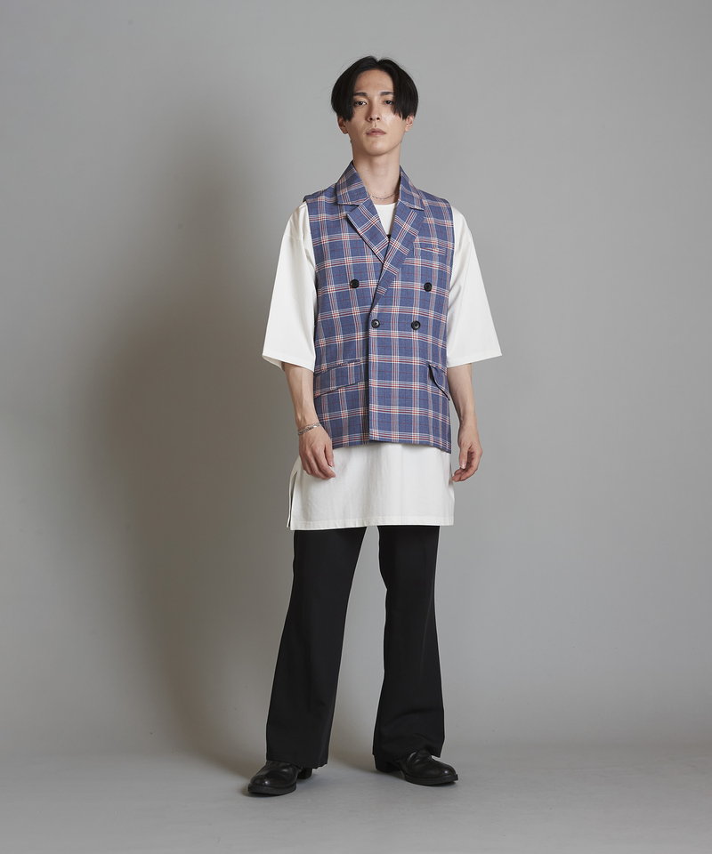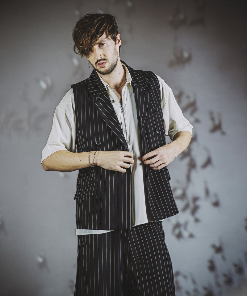 様々なレイヤードスタイルを楽しめるスリーブレスジャケット。