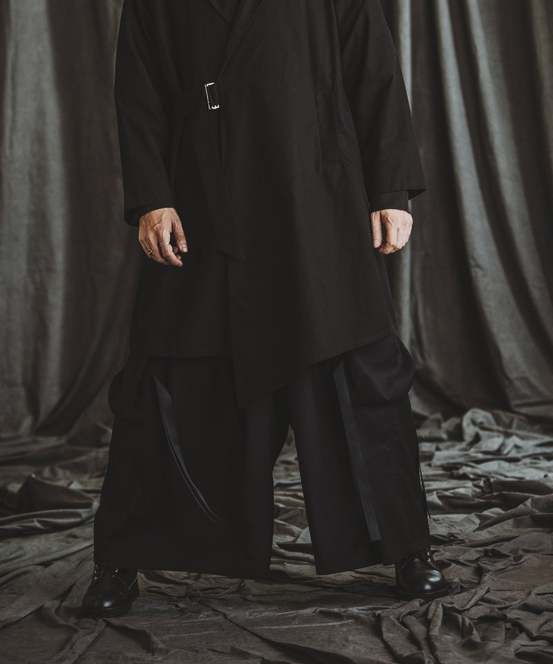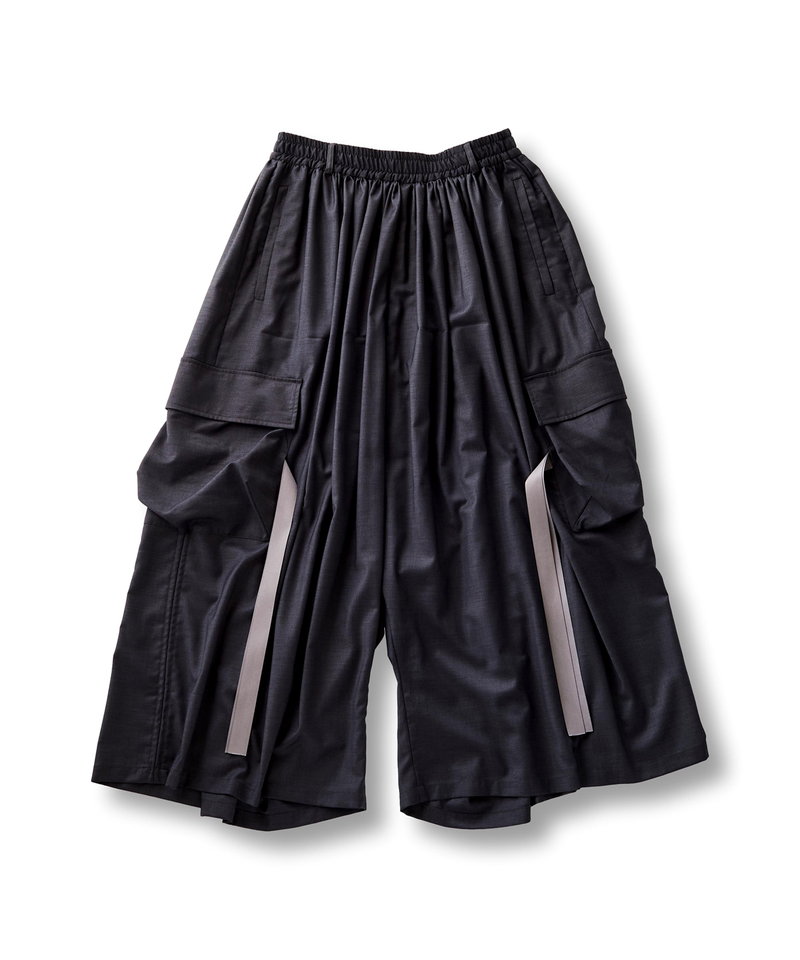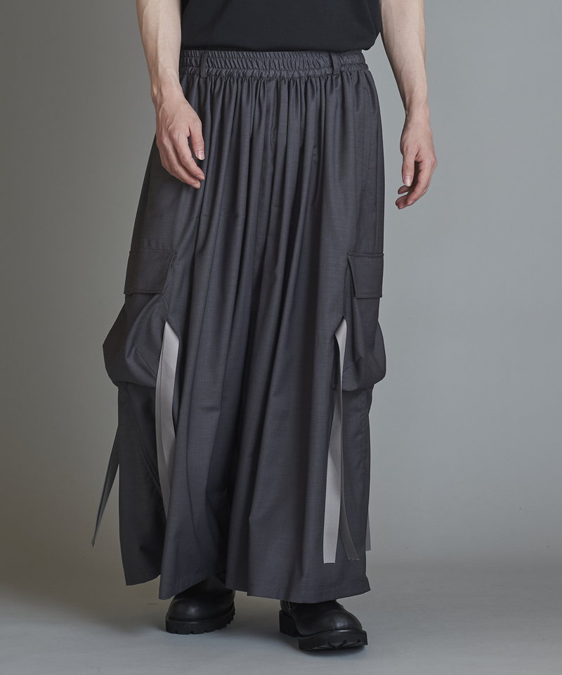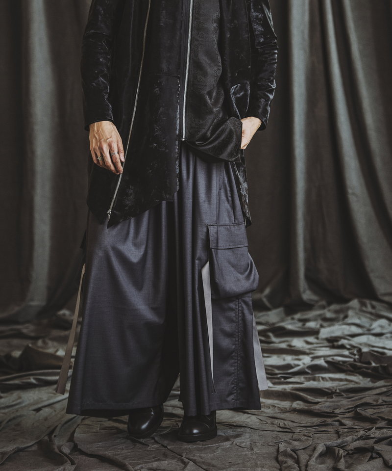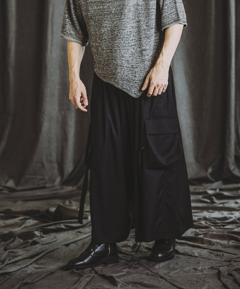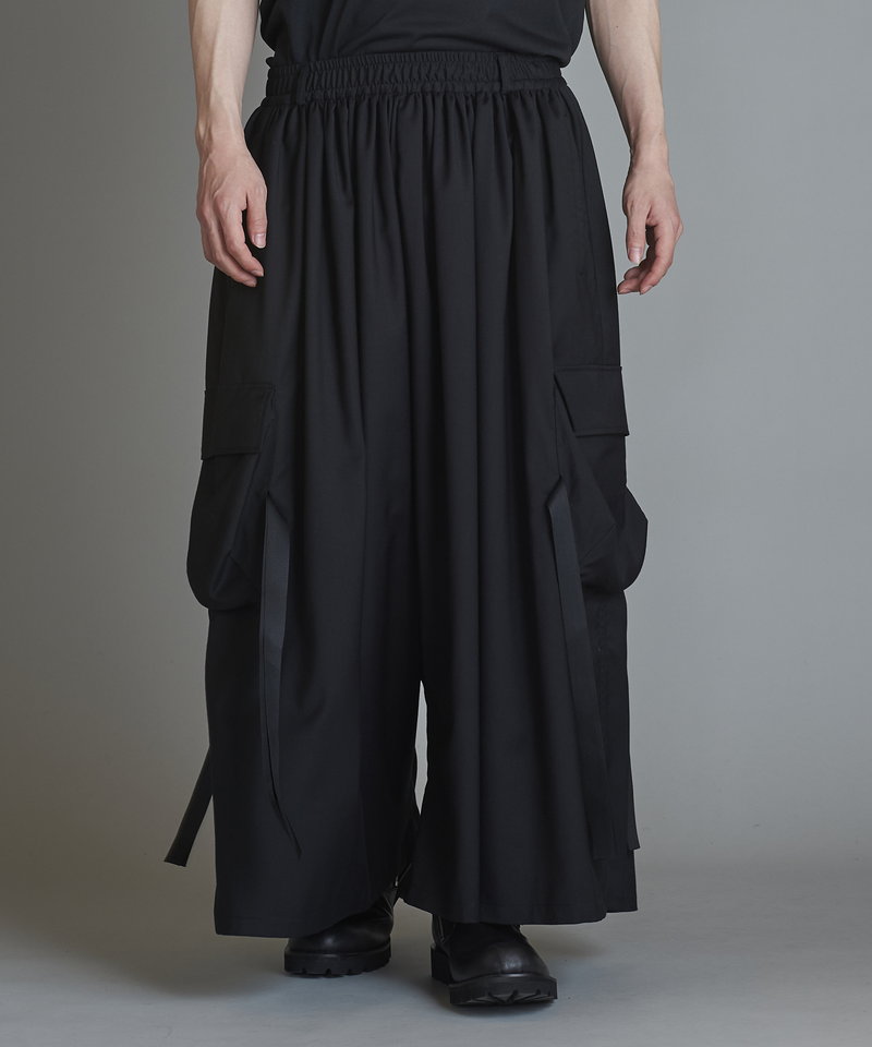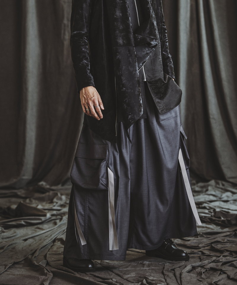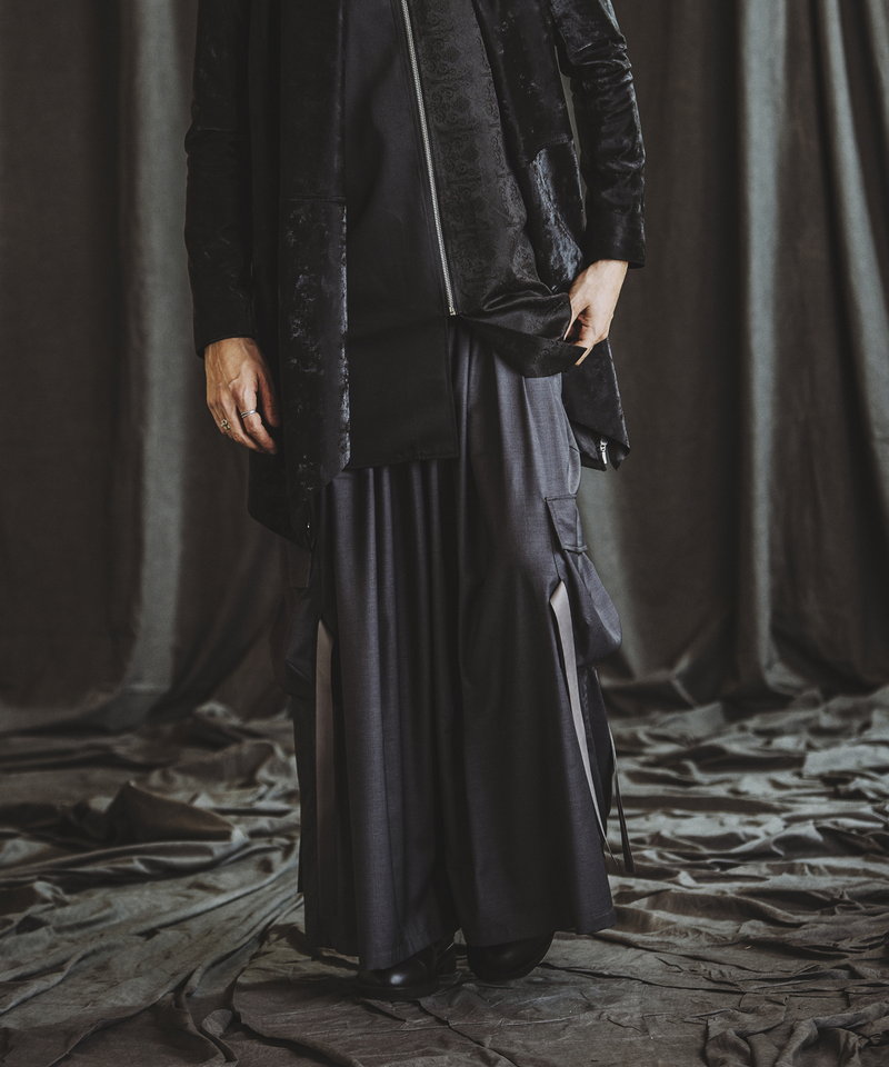 前作同様カーゴパンツベースのデザインとなっているが本作は膝から裾にかけてドローコードを配しておりカーゴポケットの中に隠れているコードストッパーを使う事で裾のラインを変形させる事が可能なフレキシブルなデザインとなっている。